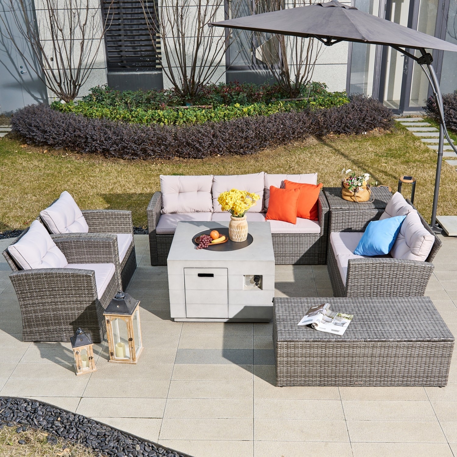 7-Piece Multifunctional Outdoor Patio Furniture Set with Fire Pit Table