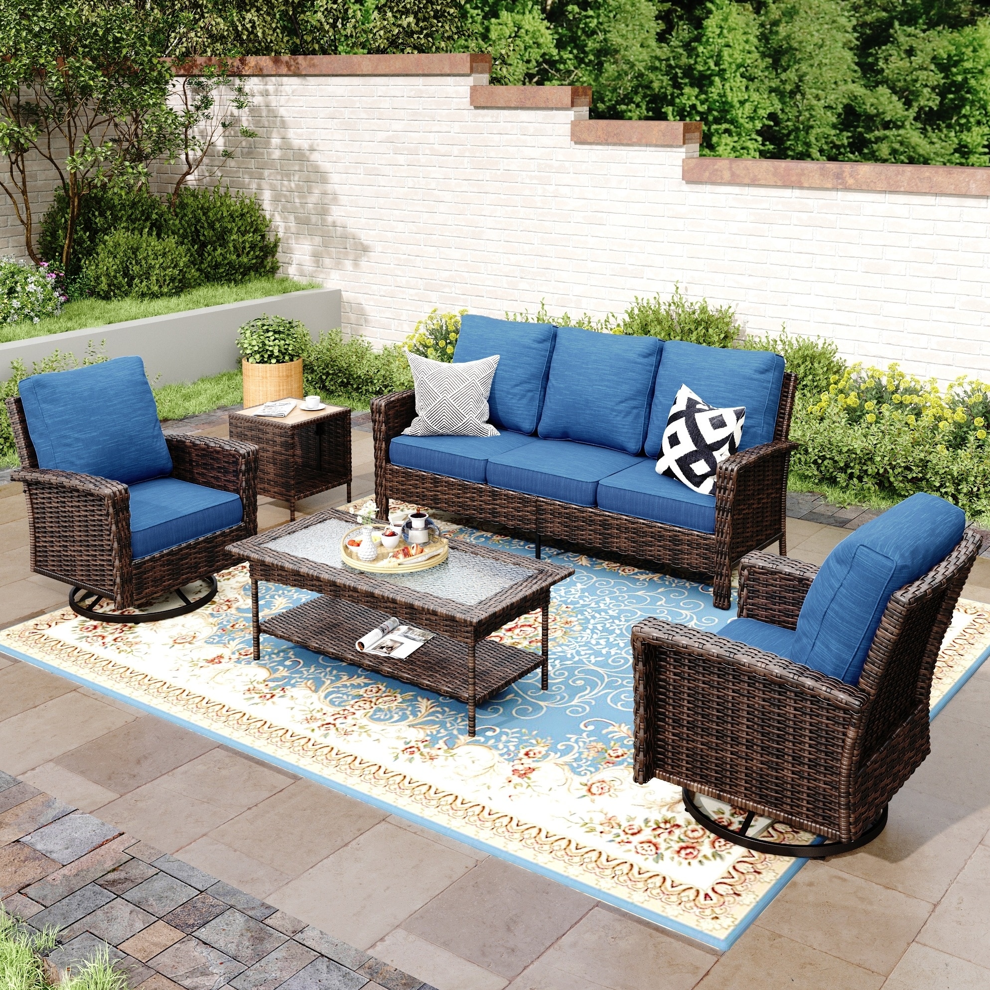 MAISON ARTS 7-Piece Extra-Large Patio Wicker Sofa Conversation Set with Table, Oversize Seat with 5.5'' Thick Padded Cushion