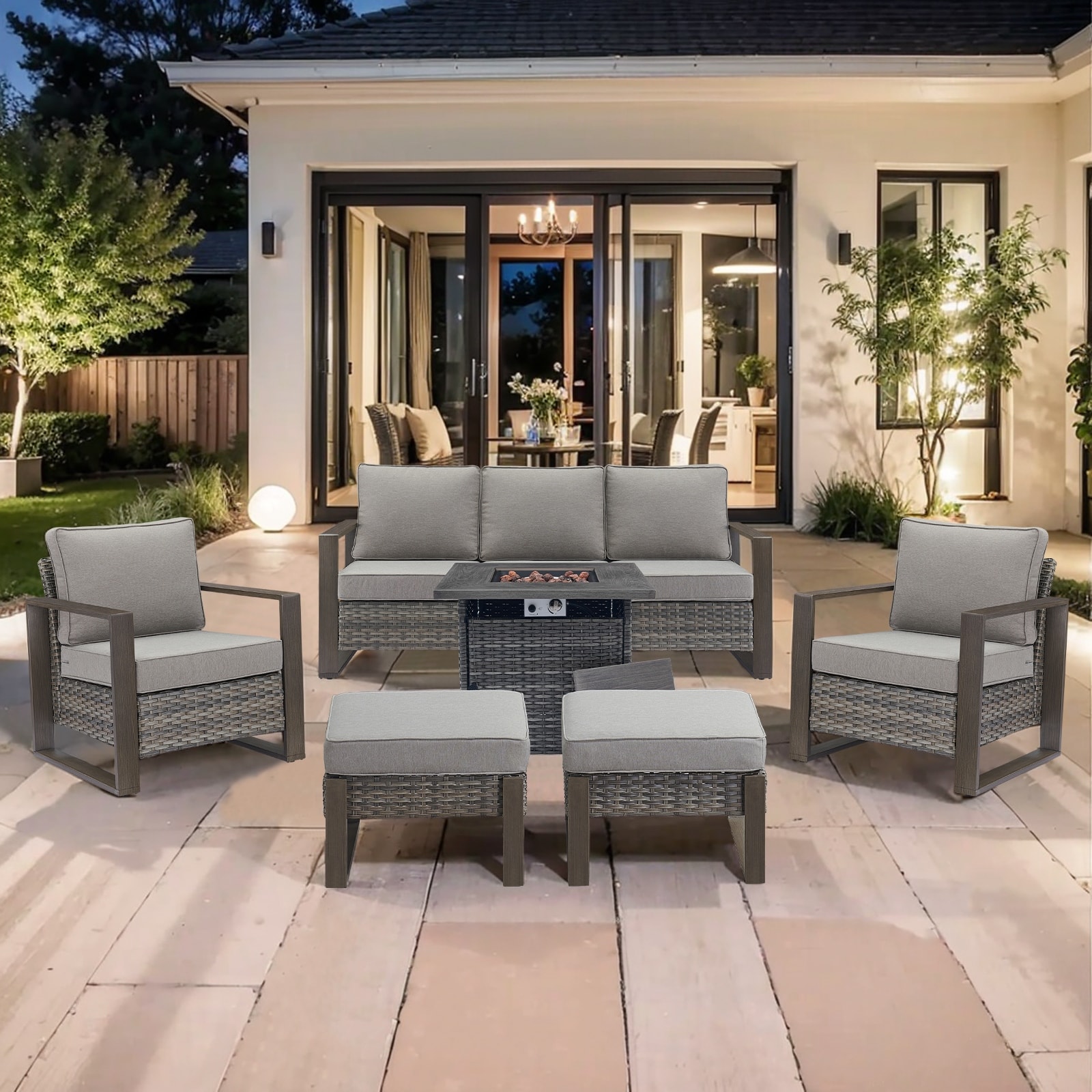 XIZZI 7-piece Outdoor Patio Furniture Set Wicker Chairs with Fire Table