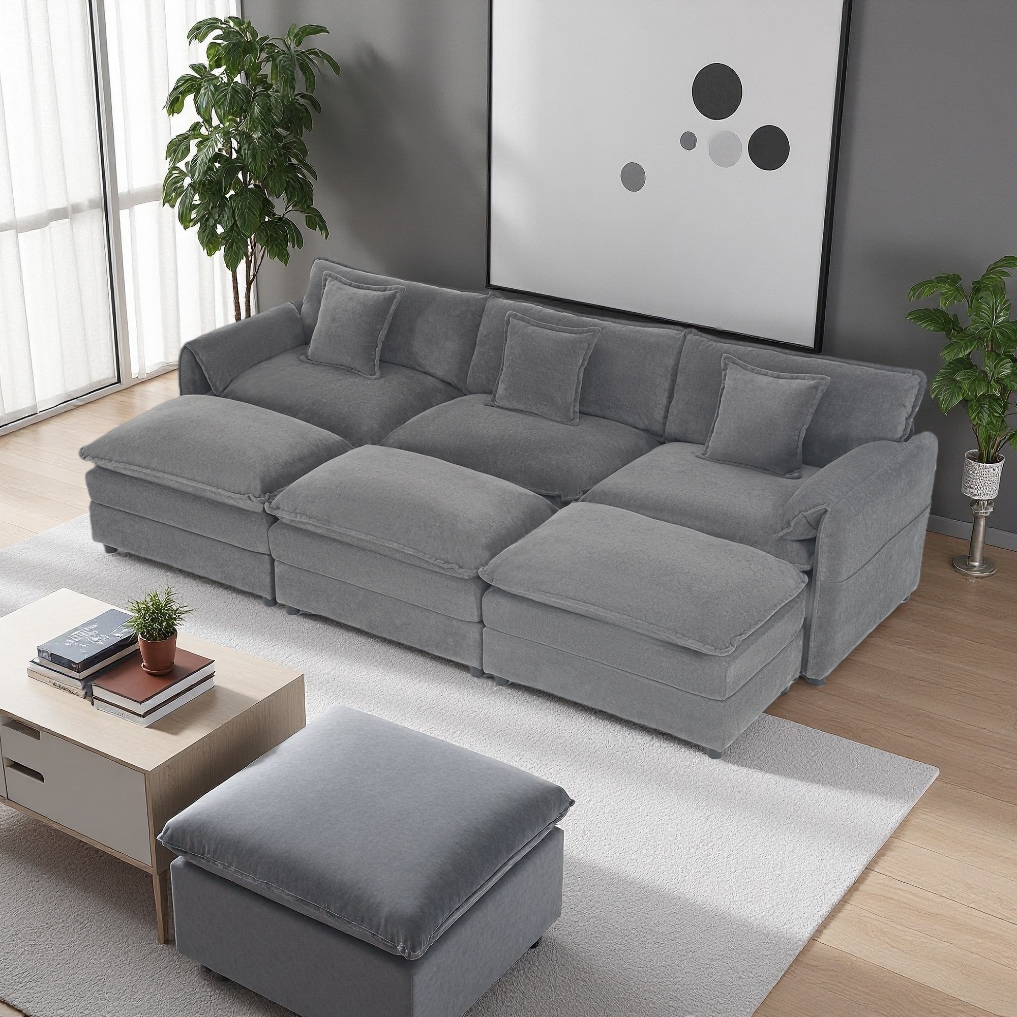 109.45" Chenille Oversized Modular Sleeper Sectional Sofa with 3 Ottomans and Soft Pillows