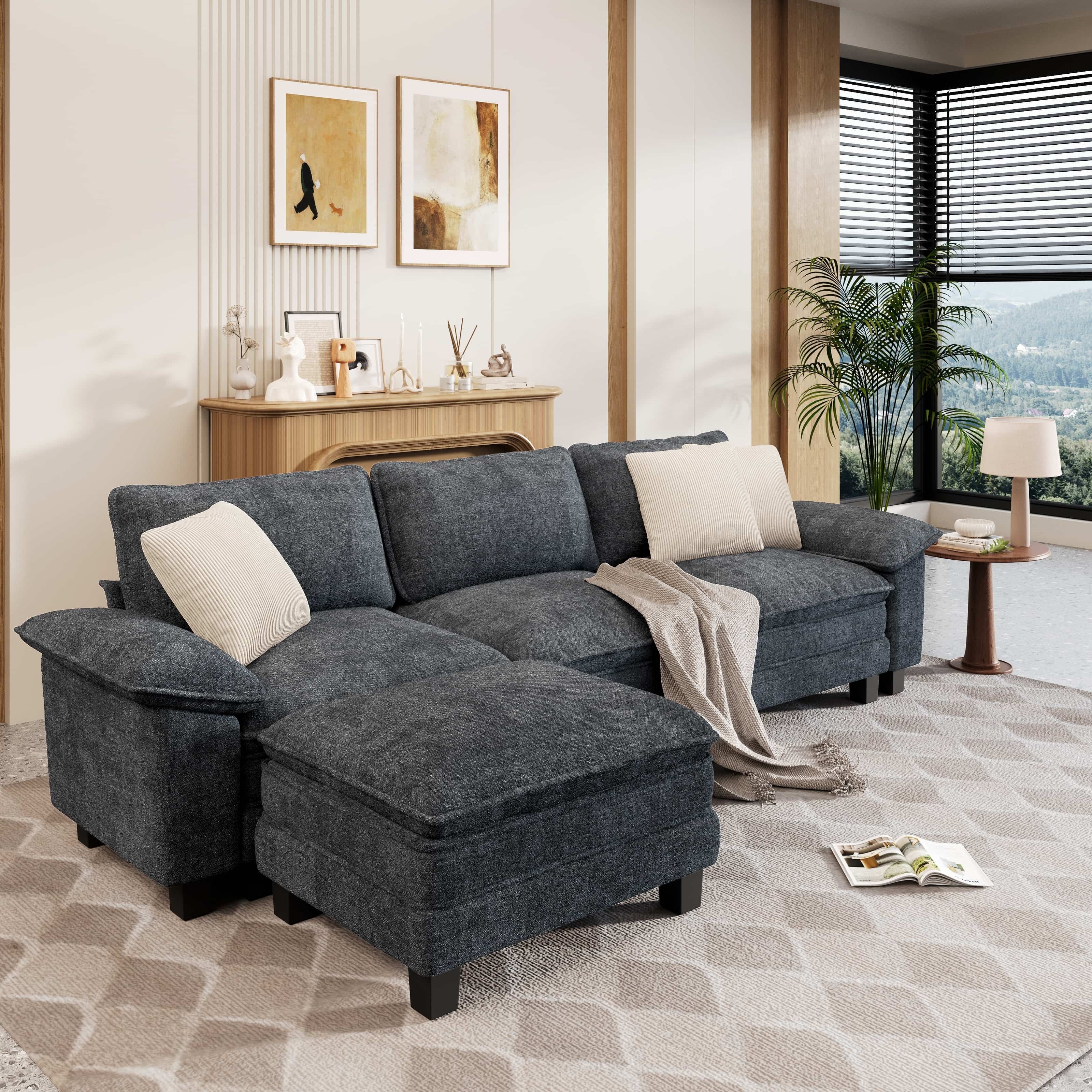 113" 3 Seater Sectional Cloud Sofa with Deep Seat and Chenille Fabric
