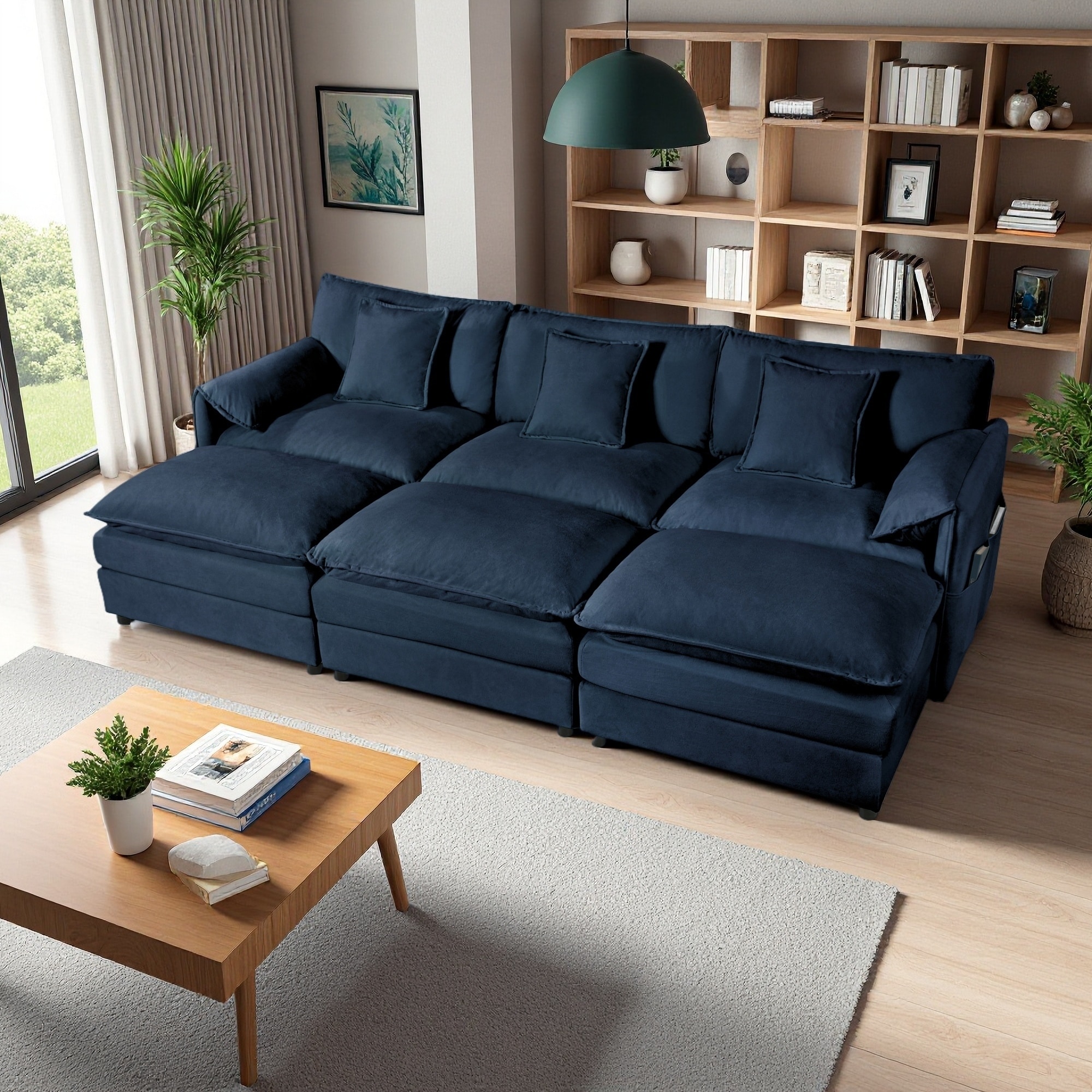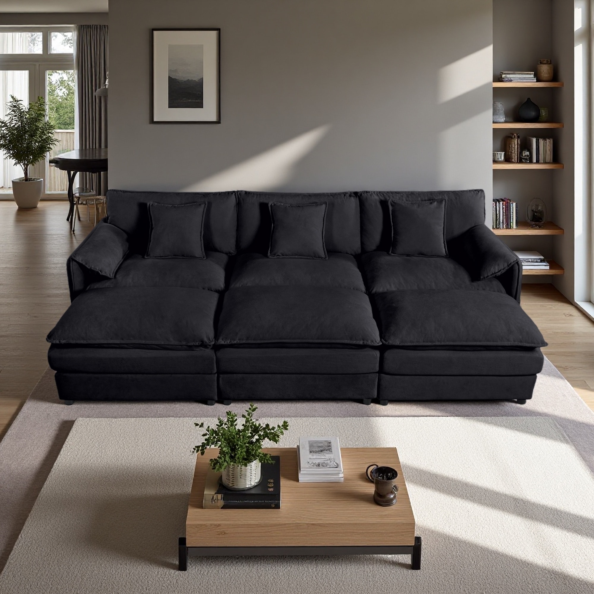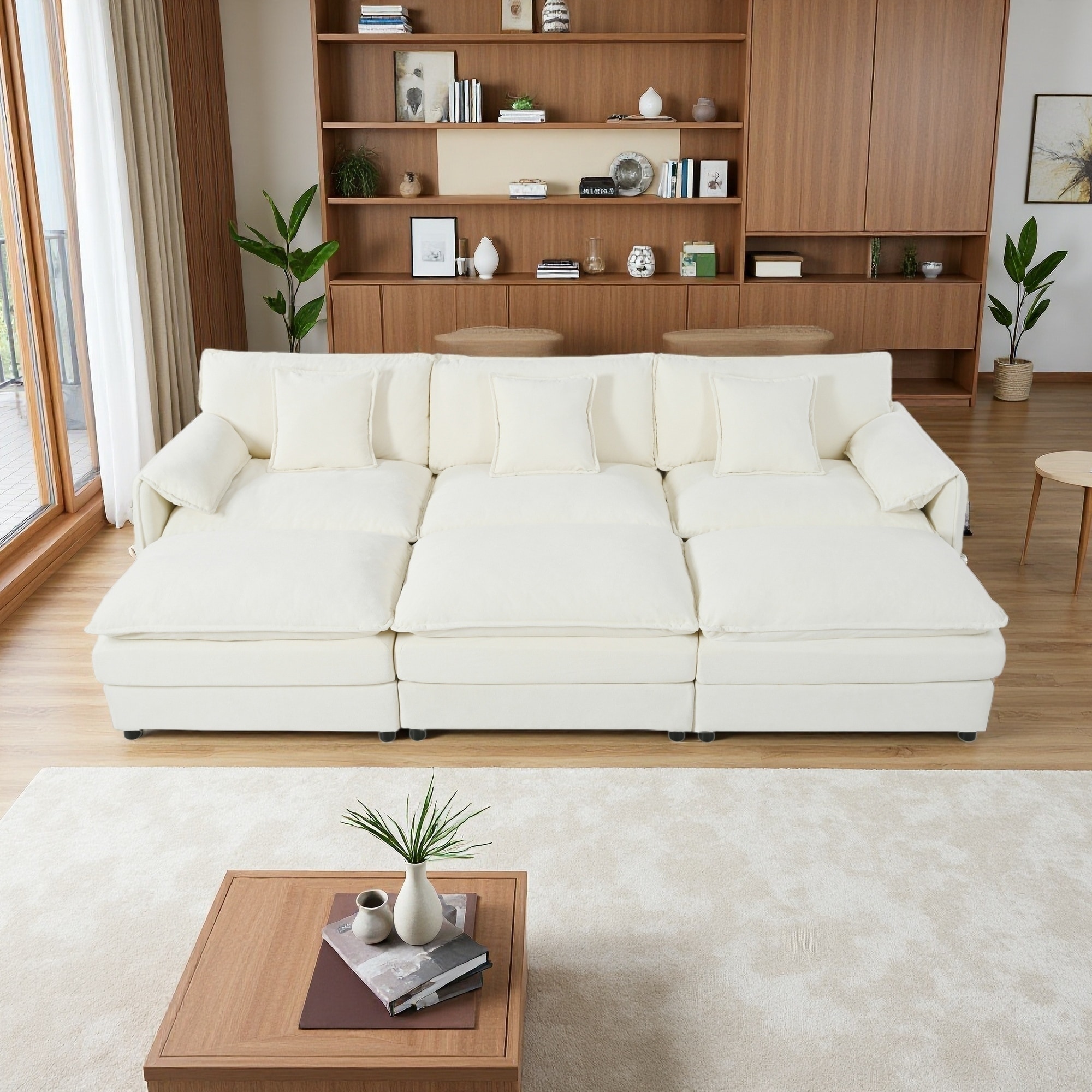 109.45" Chenille Oversized Modular Sleeper Sectional Sofa with 3 Ottomans and Soft Pillows
