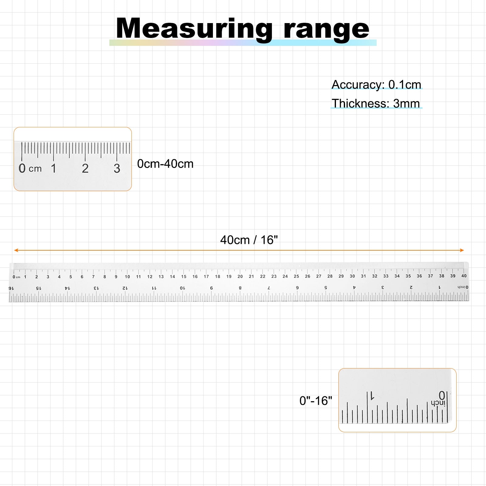 Clear Plastic Ruler Metric Inch Straight End Ruler with Black Scale Mark for Classroom Home Office