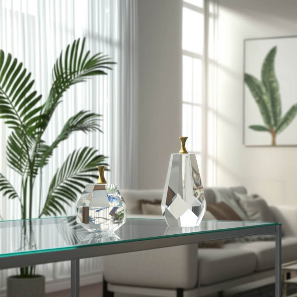Silver Glass Orb Sculpture with X Shaped Holder (Set of 2)