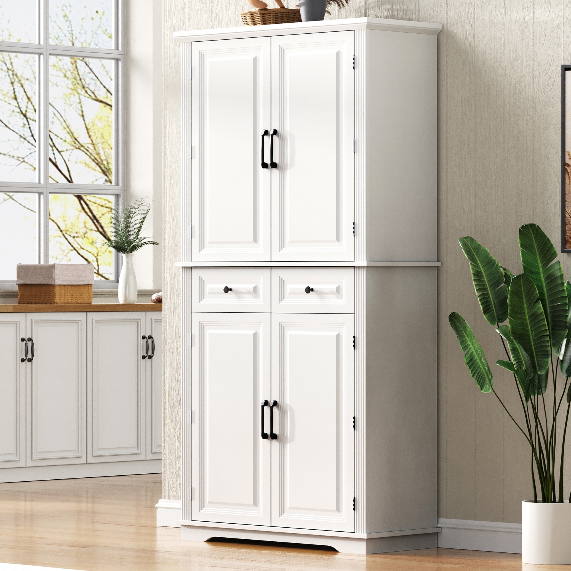 71" Tall Kitchen Pantry Cabinet with 3 Pull Out Cabinet Organizers
