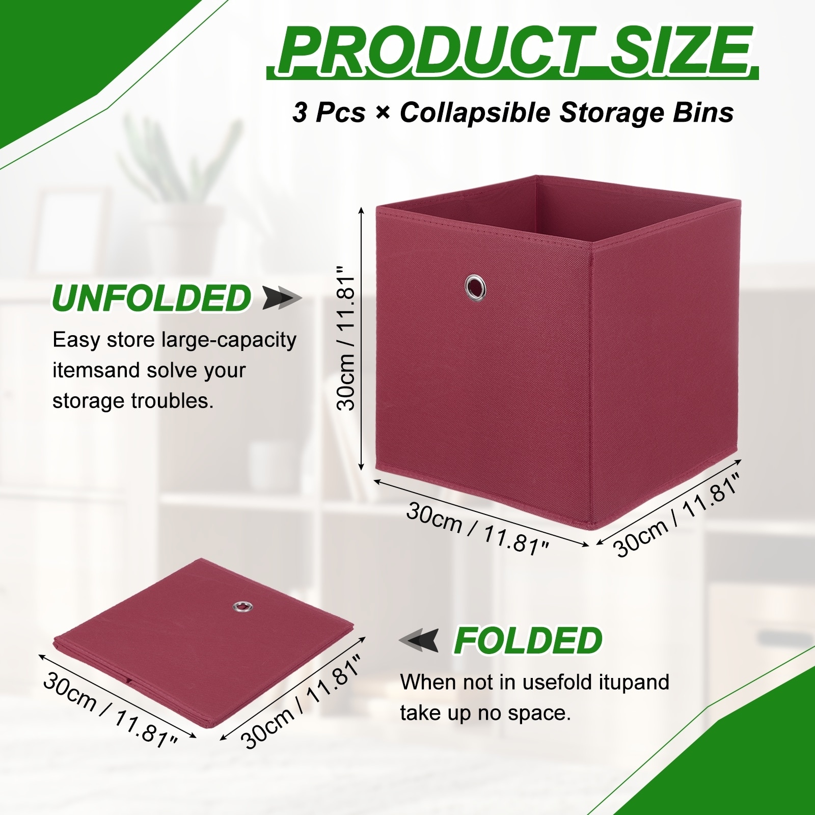 3 Pack Storage Cubes, 12 x 12 x 12 Inch Foldable Fabric Storage Bins, Dark Red - Peacock