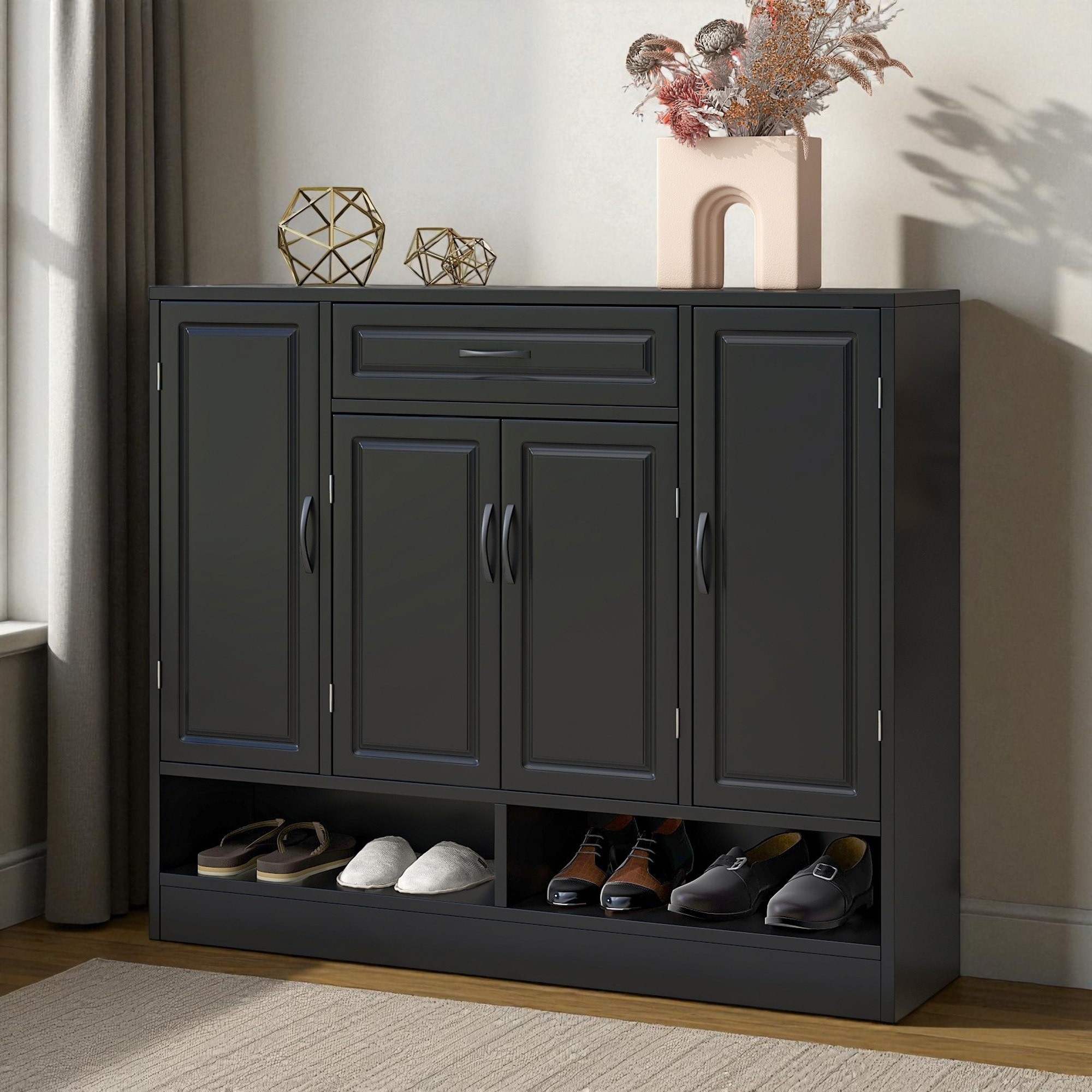 47.2" Modern Shoe Storage Cabinet with Adjustable Shelves, Minimalist Freestanding Shoe Organizer with Drawer for Entryway