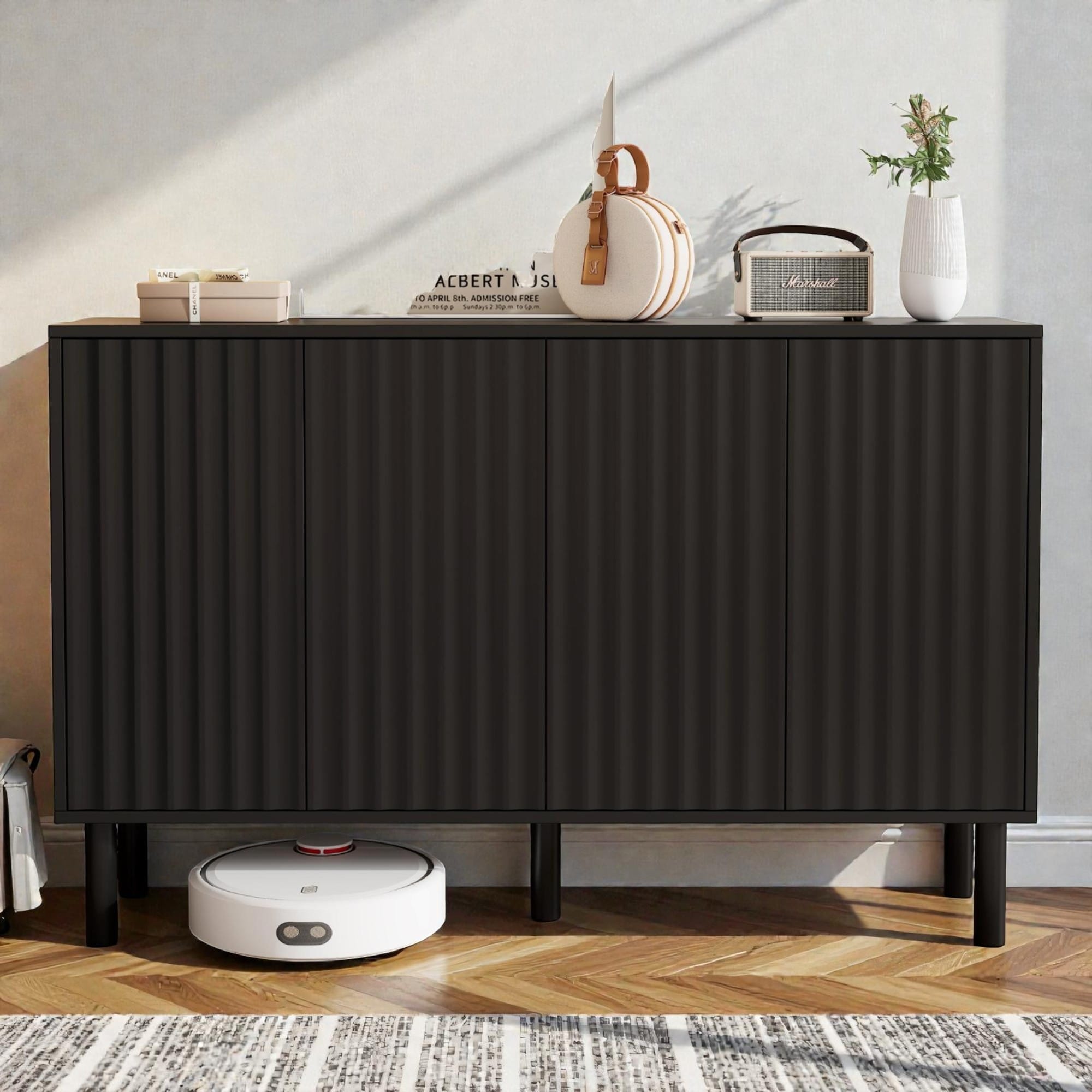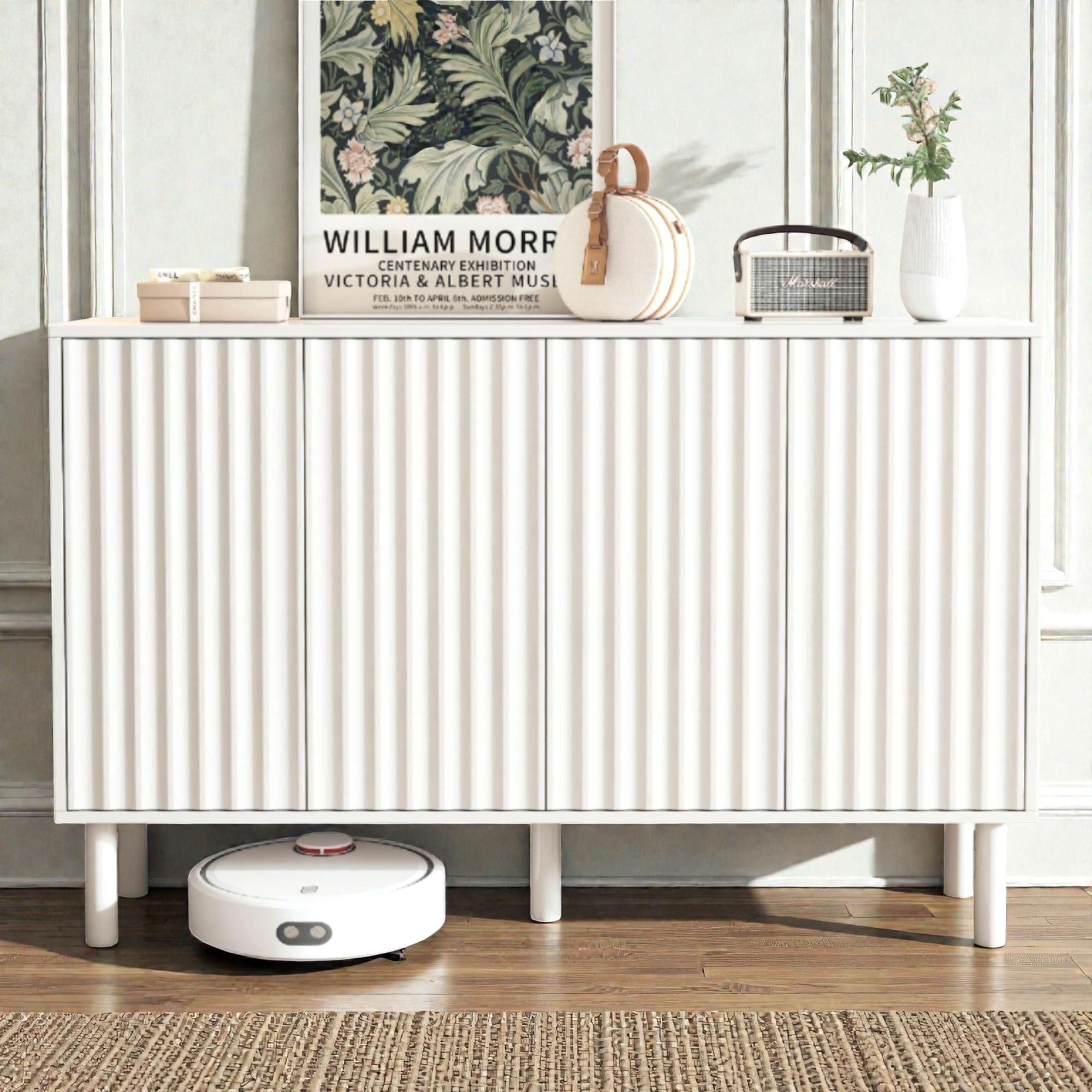 55" Fluted Door Shoe Cabinet with 5 Solid Wood Legs, 4-Door Storage Sideboard with Adjustable Shelves for Entryway, Living Room