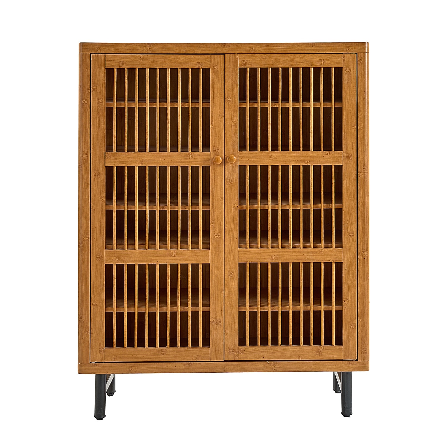 Modern Wooden 6-Tier Shoe Cabinet - Entryway Storage Organizer with Shutter Doors & Adjustable Shelves.