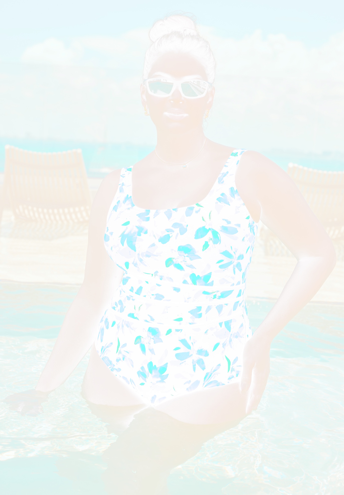 Plus Size Women's Bra Sized Faux Flyaway Underwire Tankini Top by Swimsuits For All in Neutral Floral (Size 46 G)