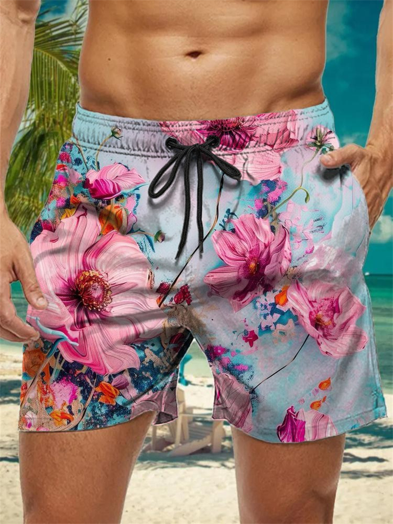 Trendy Floral Graphic Short Pants For Men, 3D Printed Hawaiian Beach Shorts Summer Fashion Vacation Oversized Swim Trunk shorts zfa58970 xl