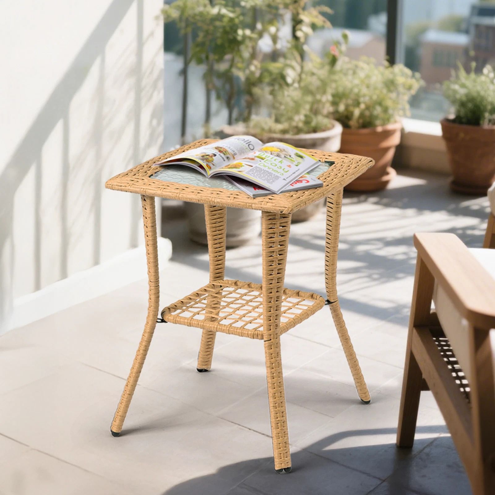 Portable Wicker Side Table With Glass Top Indoor & Outdoor All Weather Furniture Portable Wicker Side Table With Glass Top Indoor & Outdoor All Weather Furniture
