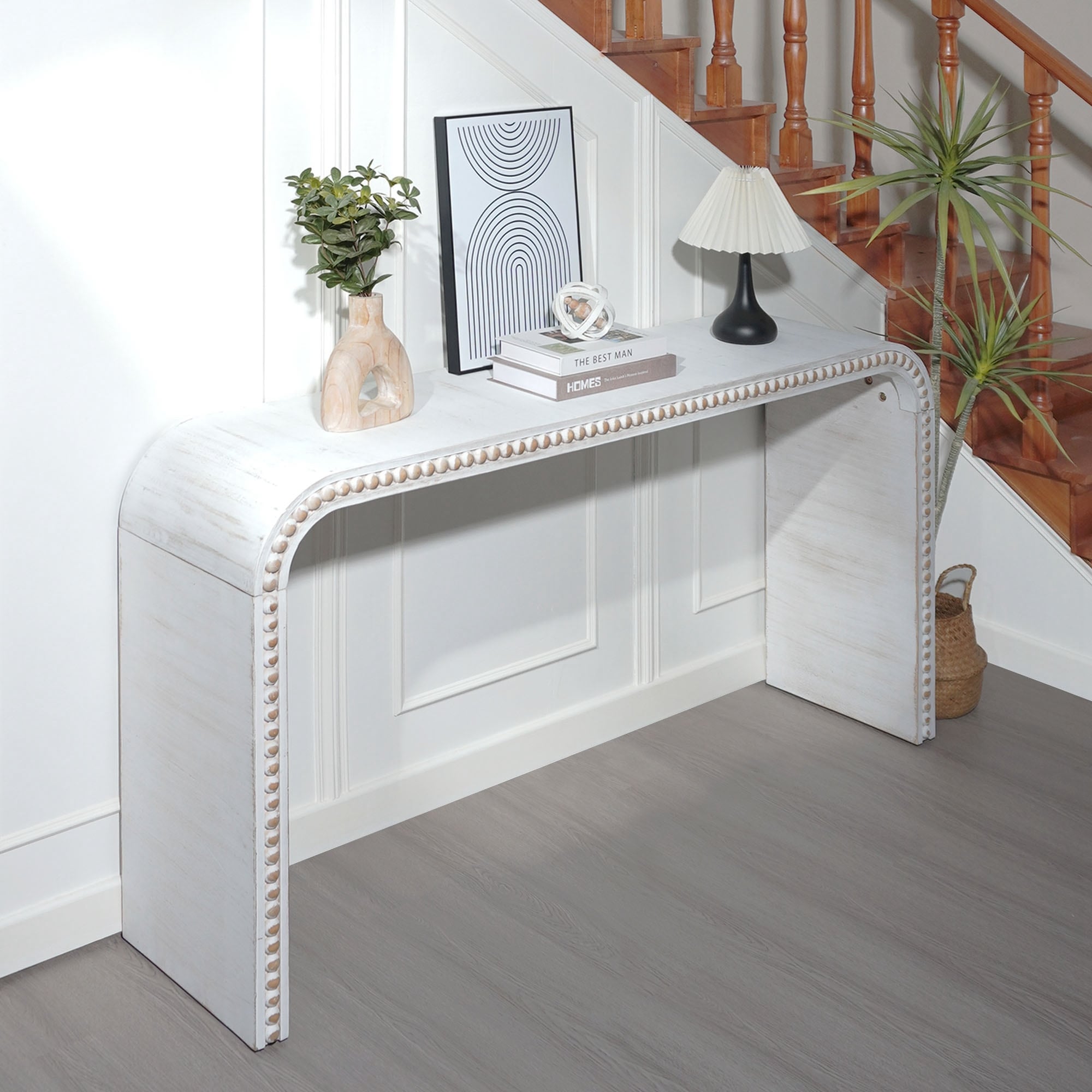 Entryway Table, Curved Waterfall-style Table,Console table with wood beads,Entrance Table for Entryway, Hallway, Living Room