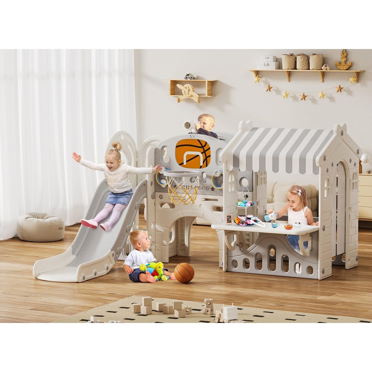 8-in-1 Toddler Indoor Playground with Slide: Baby Slide Playset for Toddlers Ages 1-3 Outdoor Play