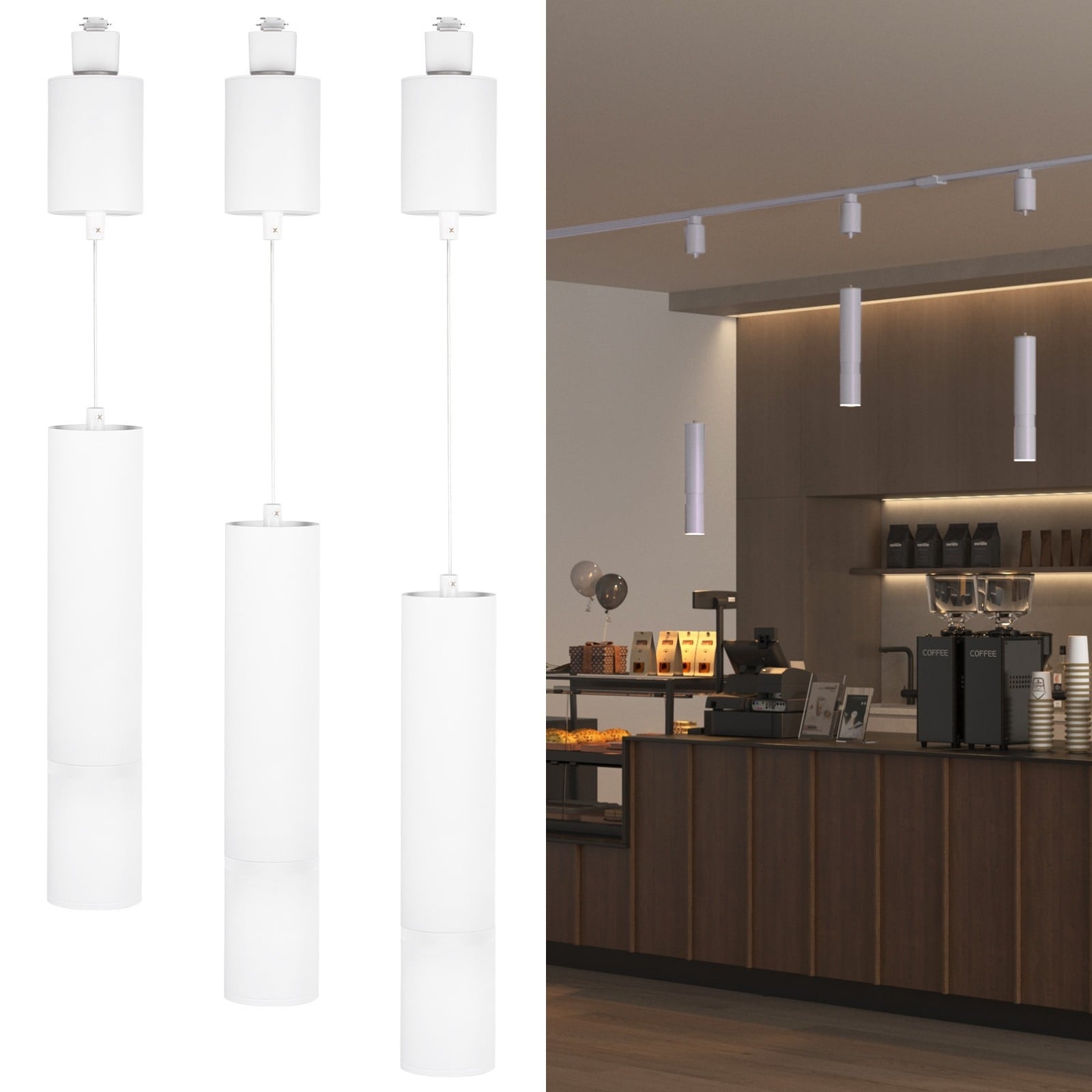 5CCT Retractable Zoomable Track Pendant Light, H Track Compatible, 20W 1600lm, Adjustable Drop, White - 3 Pack