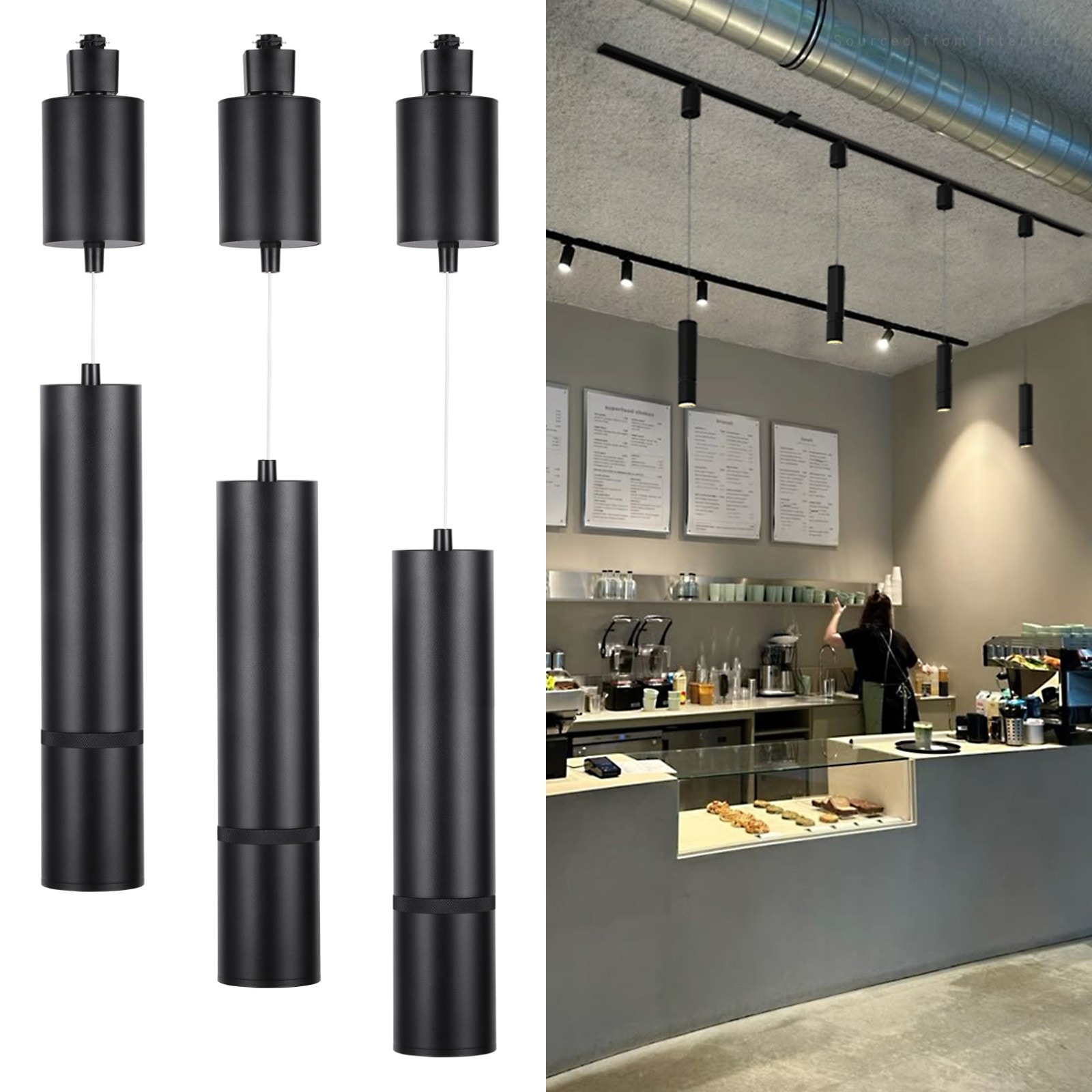 5CCT Retractable Zoomable Track Pendant Light, H Track Compatible, 20W 1600lm, Adjustable Drop, Black - 3 Pack