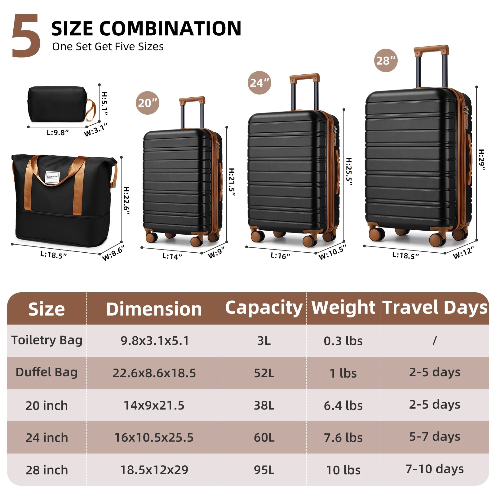 Luggage Sets 5 Piece With Duffel Bags, Hardside Expandable Suitcases With Spinner Wheels