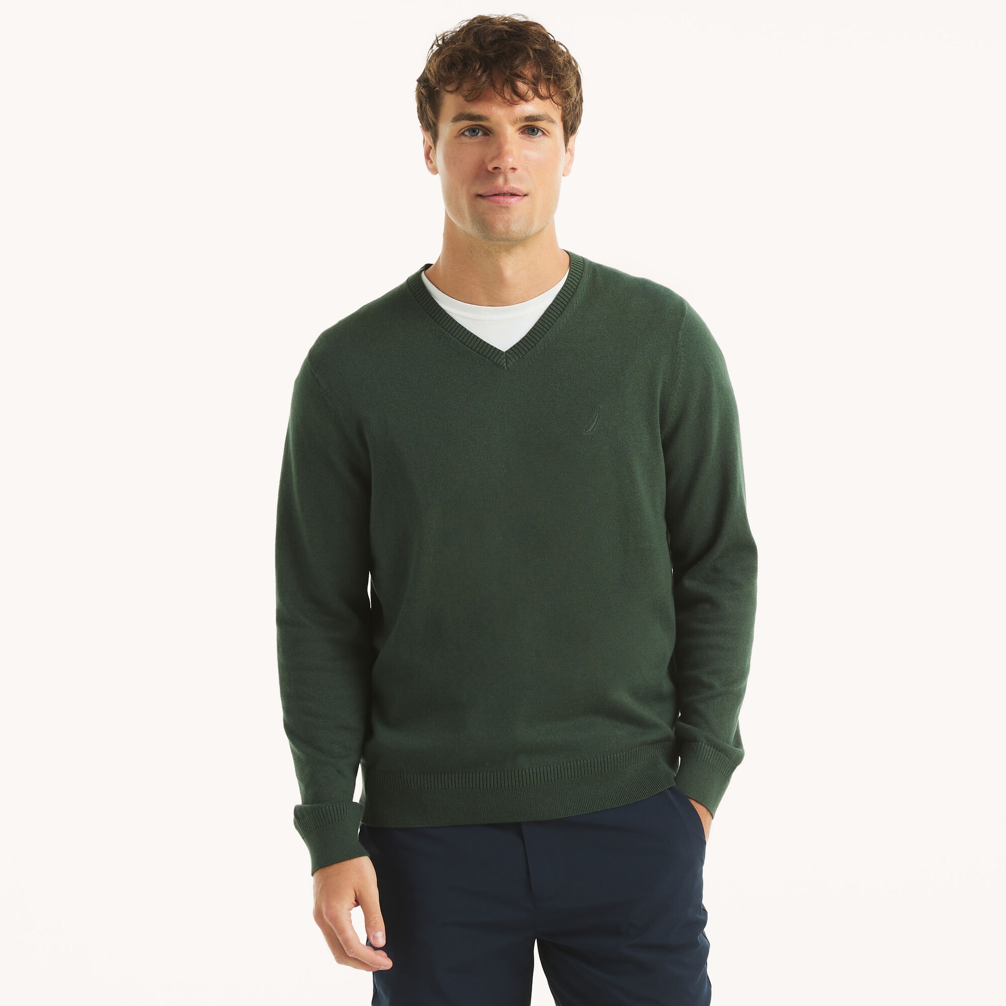 Classic V Neck Pullover Sweater For Men Warm Cashmere Cotton Blend Winter Jumper o neck Green m