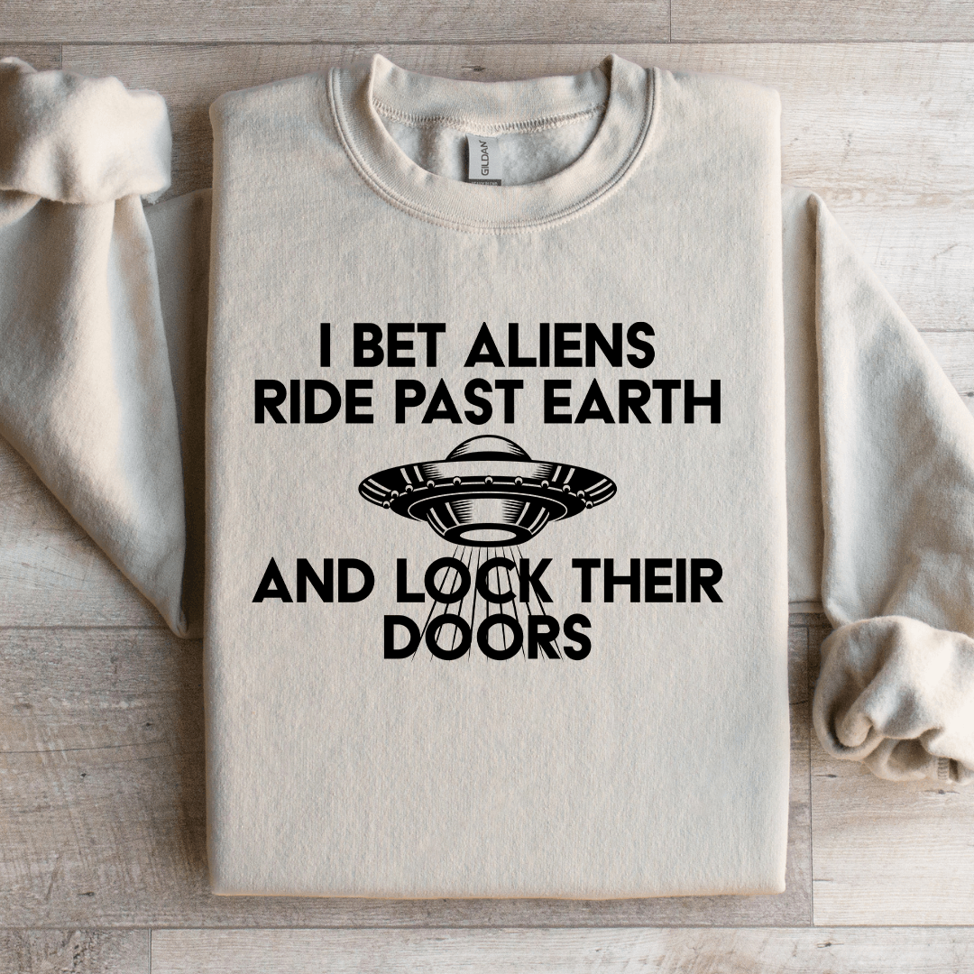 I Bet Aliens Ride Past Earth Sweatshirt M Sand