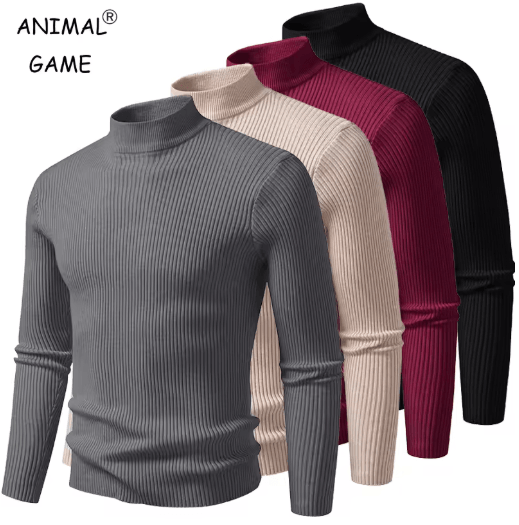 Mens Mock Neck Pullover Sweater High Neck Long Sleeve Winter Casual Knit beige xl
