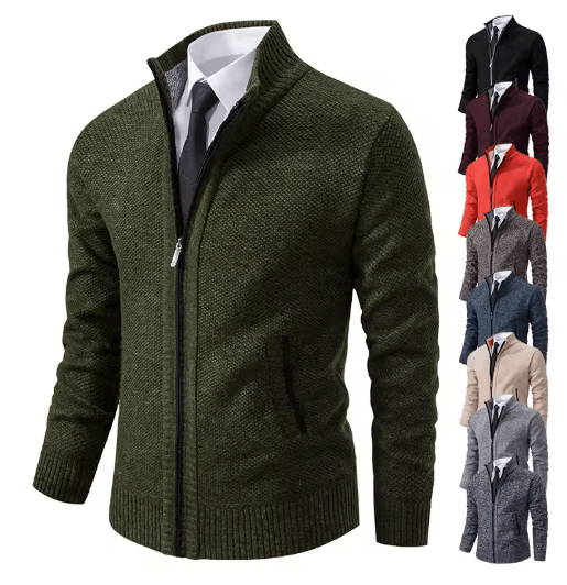 Mens Autumn Winter Casual Sports Cardigan Fleece Lined Stand Collar Zipper Sweater wine Red Hooded l