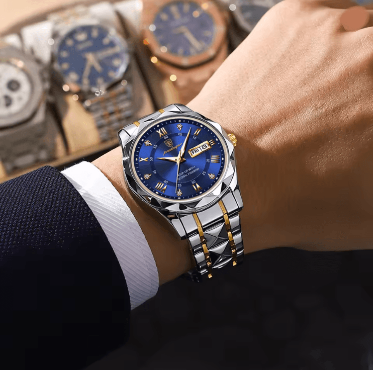 AquaLuxe Diver 30ATM Luxury Mens Waterproof Watch With Quartz Movement black Gold