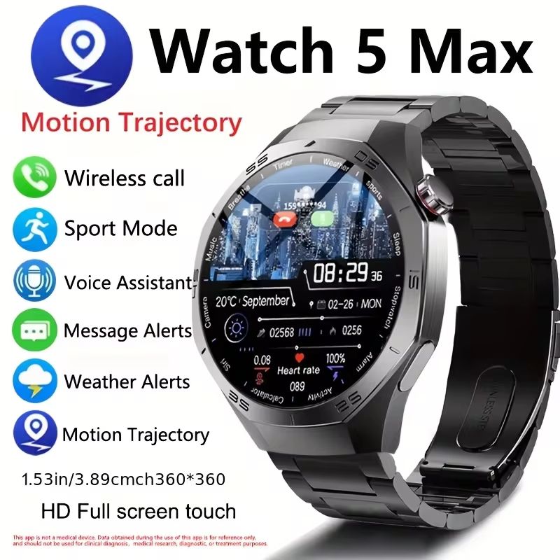 Smart Watch For Men AMOLED Display GPS Fitness Tracker With Bluetooth Calling silvery