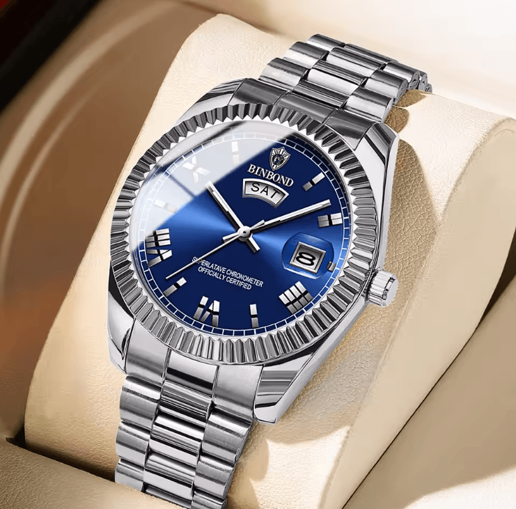 Luxury Business Quartz Watch For Men With Week & Date Display gold Grey Face