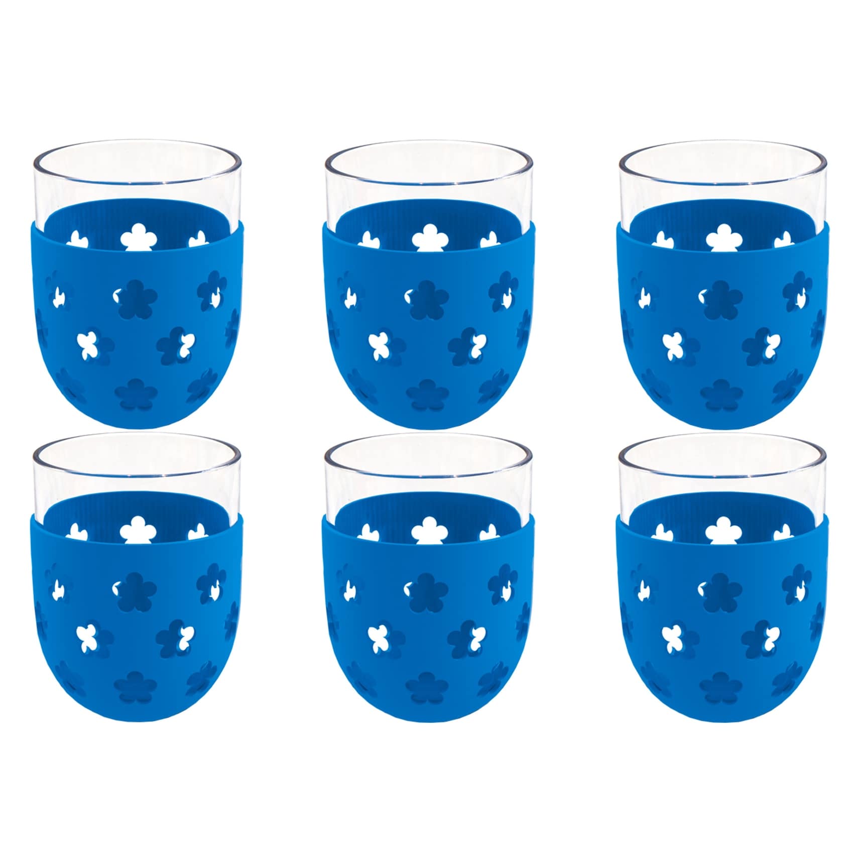 Abode Homewares Party Sleeve Flower Acrylic Stemless Wine Glass - Blue - 15.5 oz - Set of 6