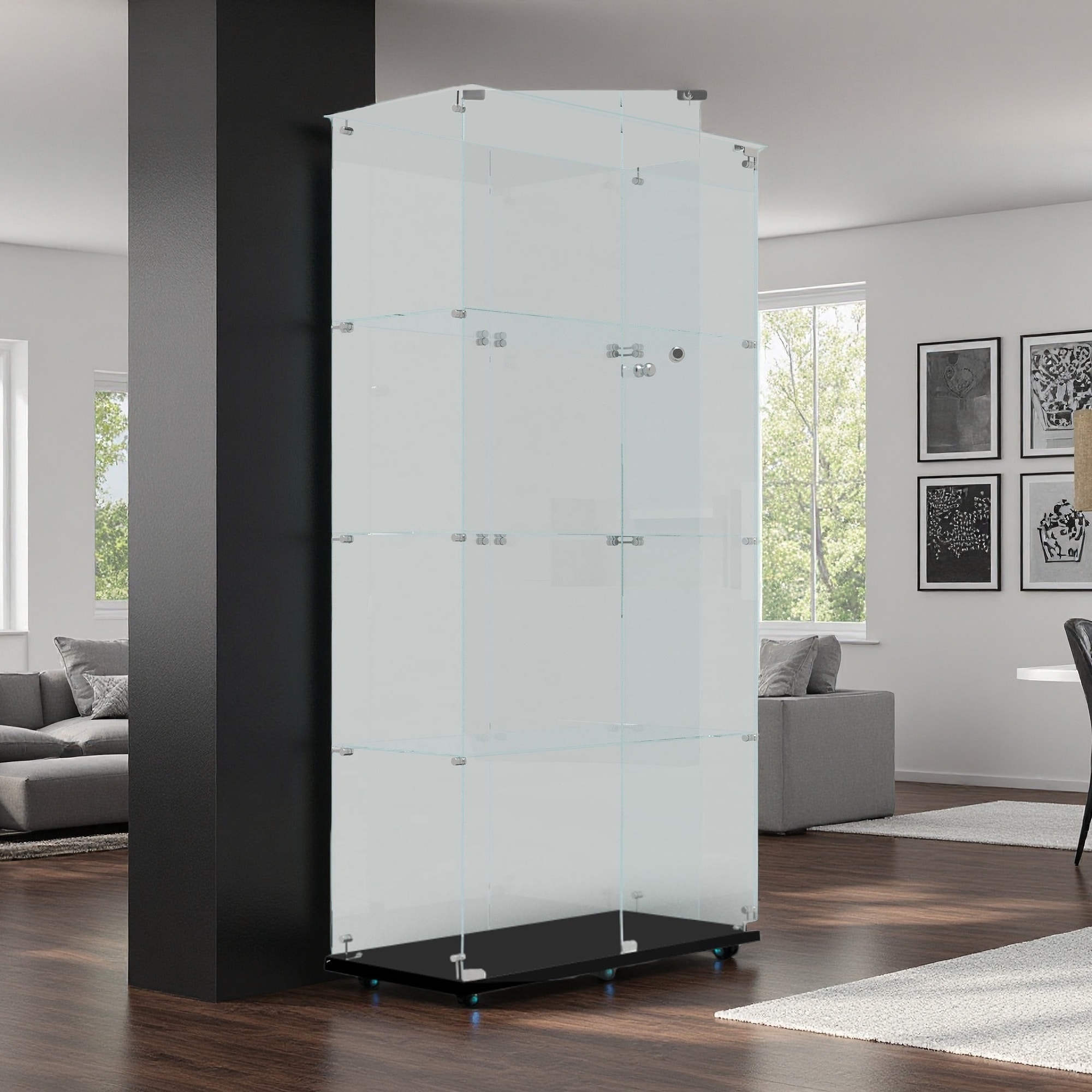 65"H Tempered Glass Wine Cabinet, Bluetooth LED, Swivel Casters, Remote Control