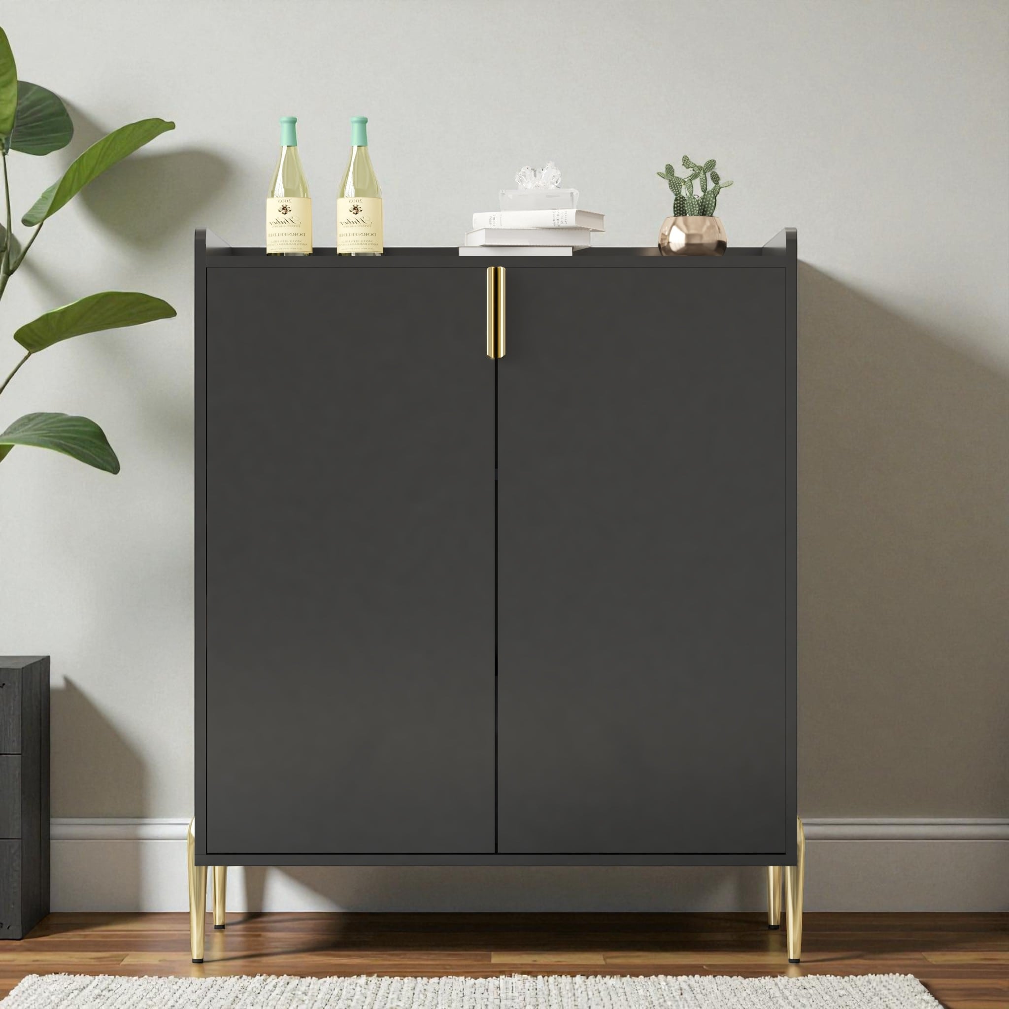 Modern 2-Door Wine Cabinet with Rack & Adjustable Shelf – Soft-Close Hinges, Perfect for Dining Room, Kitchen, or Living Room.