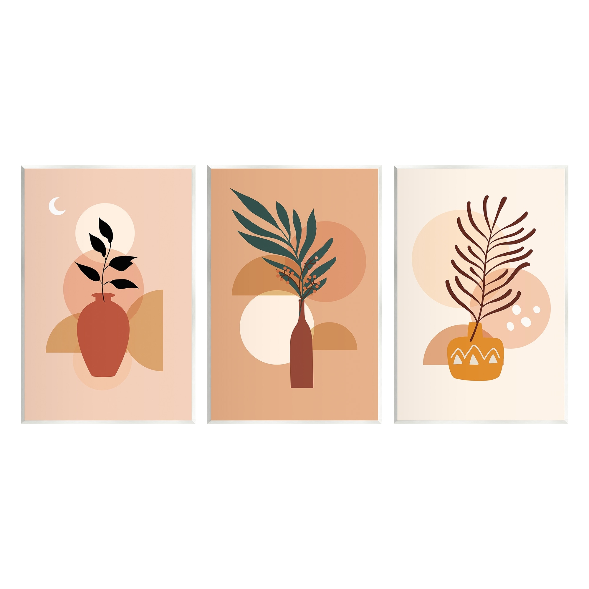 Stupell Boho Plant Vases 3 Piece Wall Plaque Art Set Design by Arctic Frame