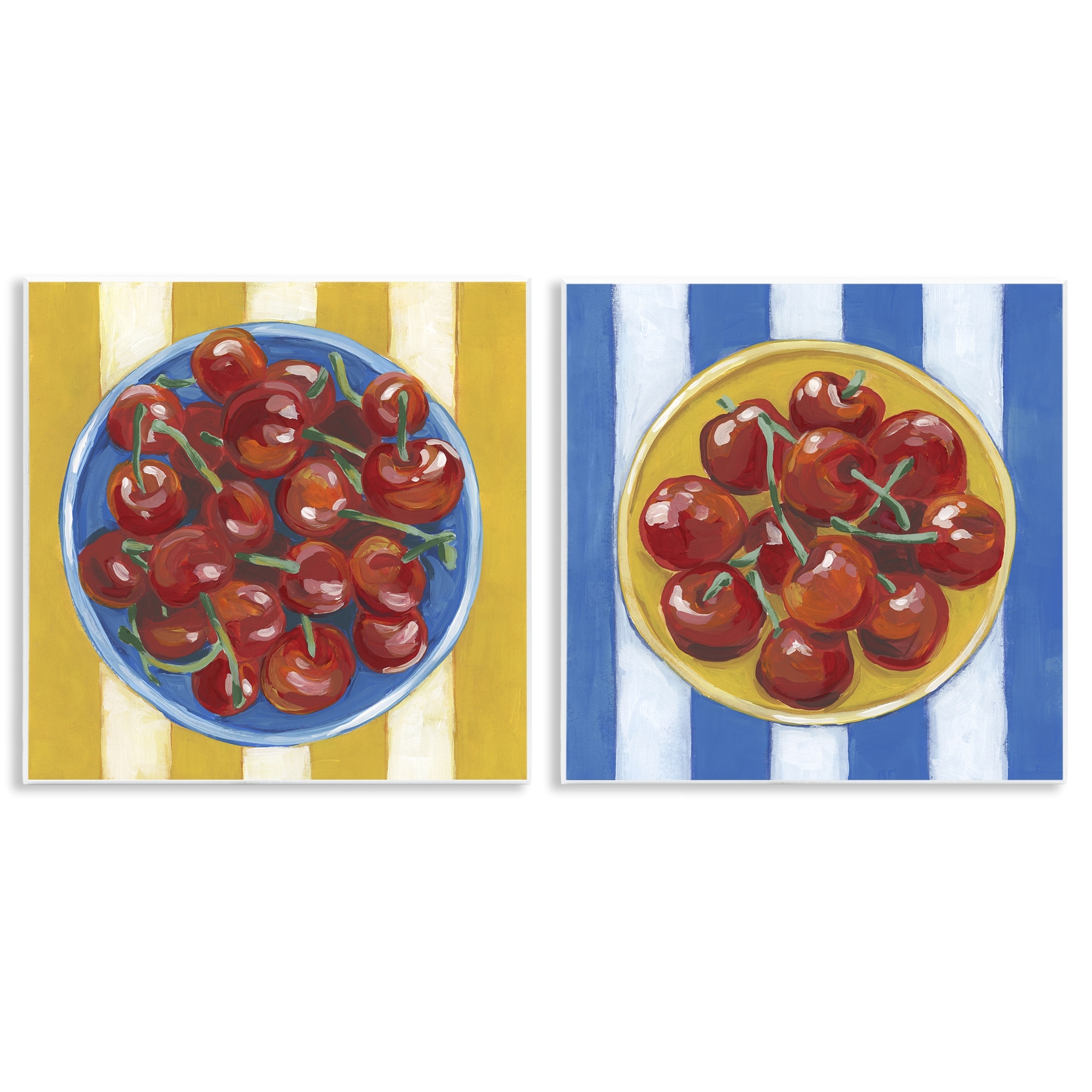 Stupell Cherry Bowl Summer Stripes Wall Plaque Art Design By June Erica Vess (Set of 2)