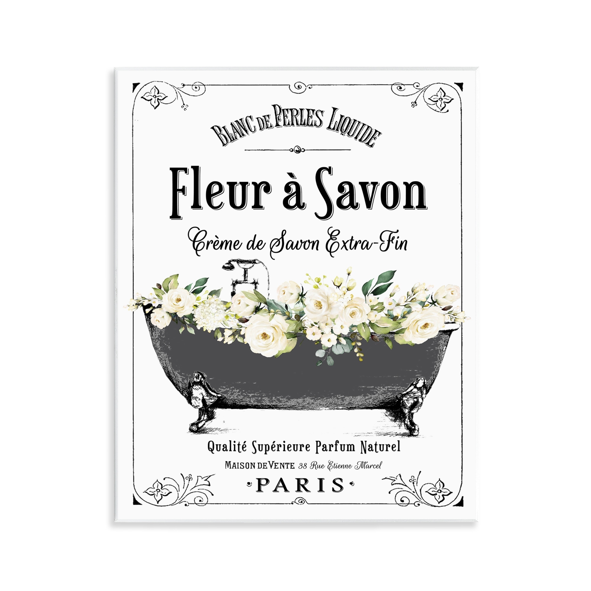 Stupell French Flower Bathtub Wall Plaque Art Design By Lettered and Lined
