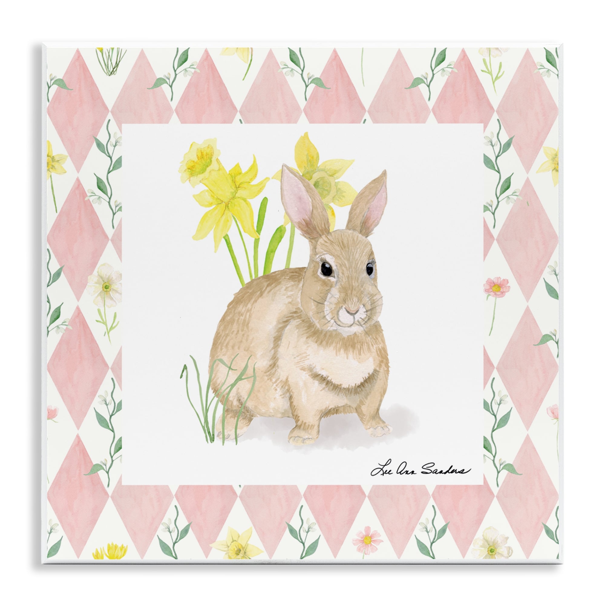 Stupell Bunny on Pink Argyle Wall Plaque Design by Lee Ann Sanders