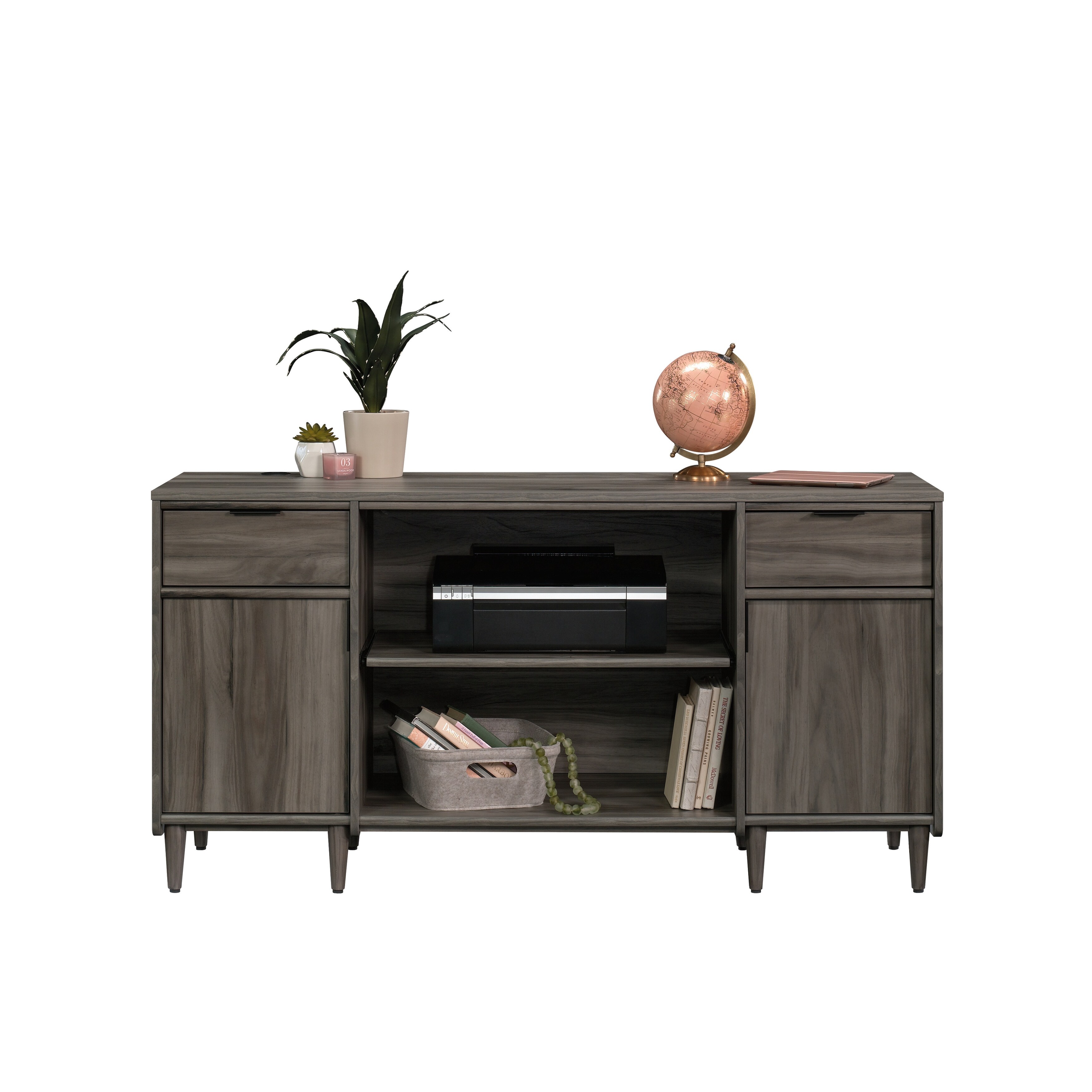 Wood Modern Credenza with 2 Drawers and 2 Open Shelf, Dark Gray - 59.06"W x 18.5"D x 30.39"H