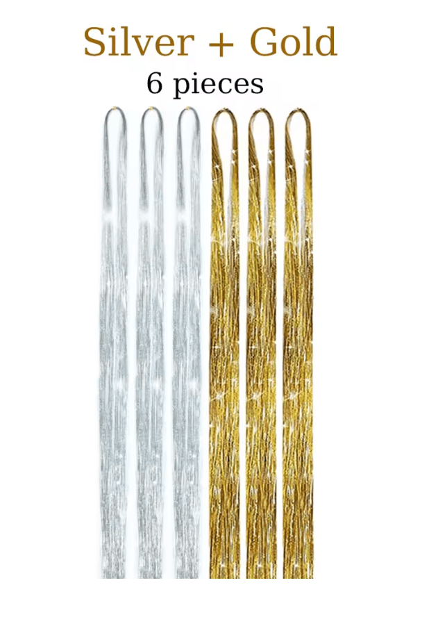 48 Inch Fairy Hair Tinsel Kit 1200 Sparkling Hair Extensions In 12 Colors silver And Gold 48 Inches