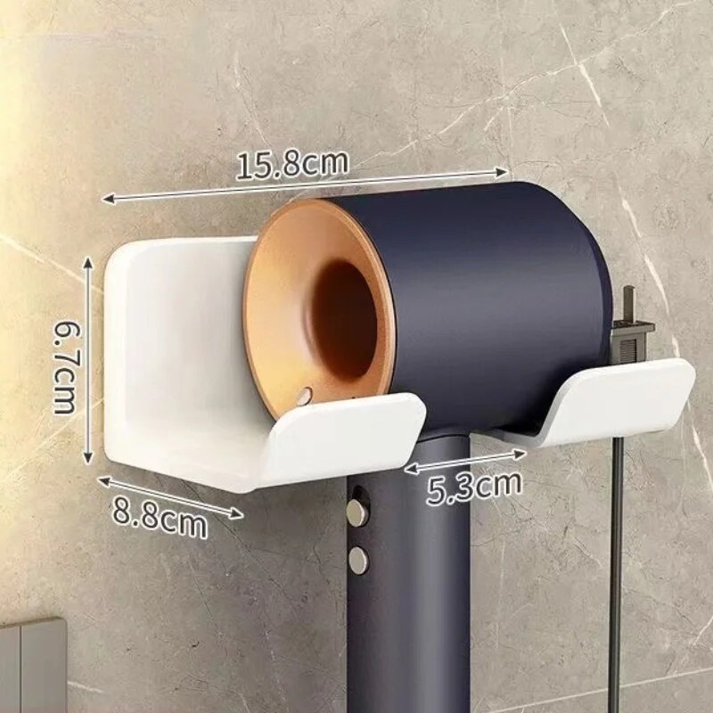Wall Mounted Hair Dryer Holder & Organizer For Bathroom Space Saving Hair Straightener & Dryer Stand With Shelves Color: White B