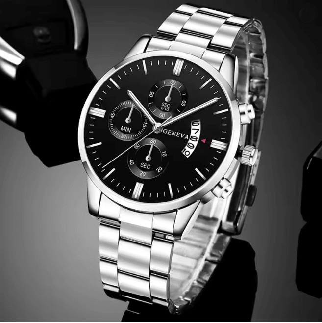 Silver Stainless Steel Luxury Quartz Watch black Gold