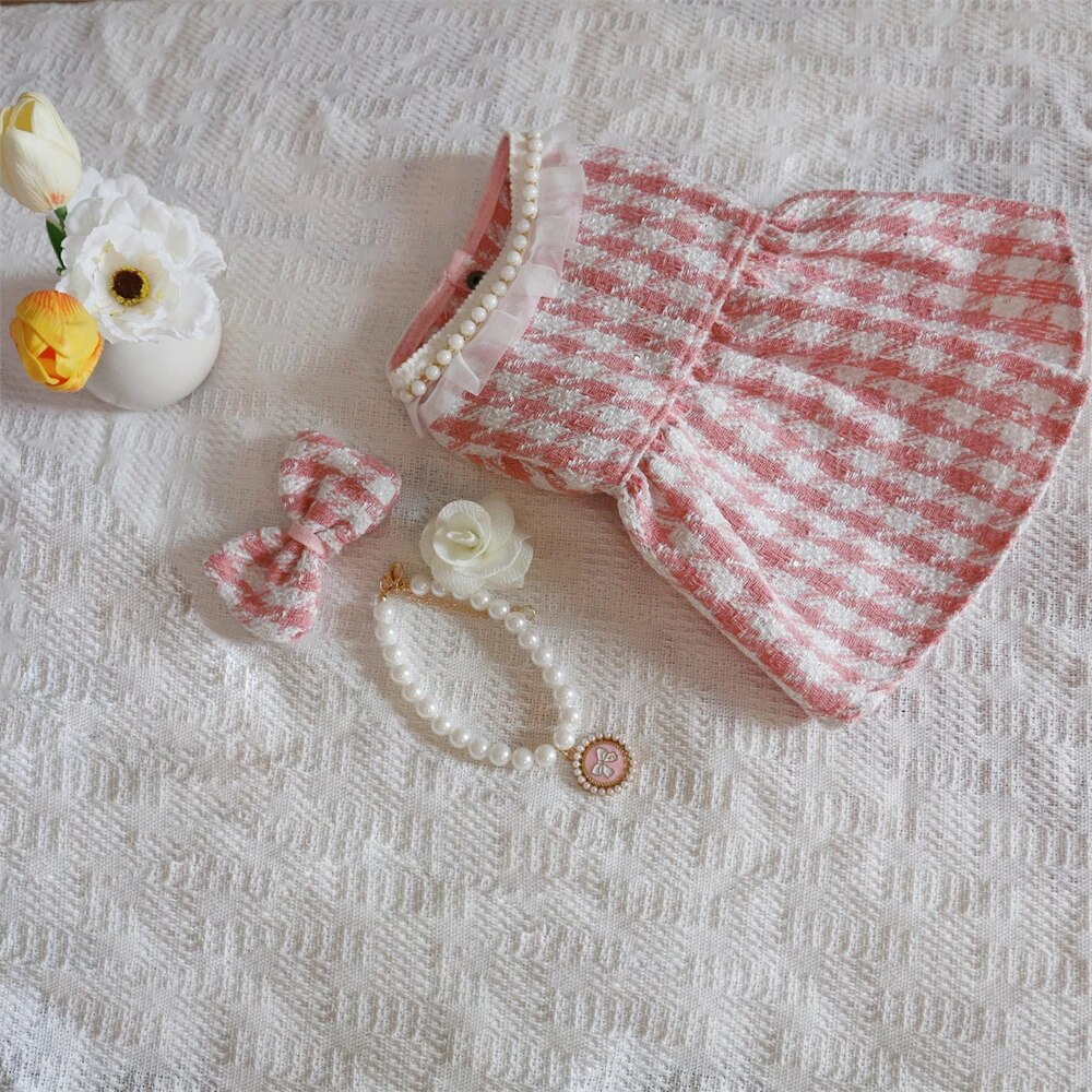 Puppy Plaid Wool Dress Pearl Neck Sweater Dog Cardigan M 3