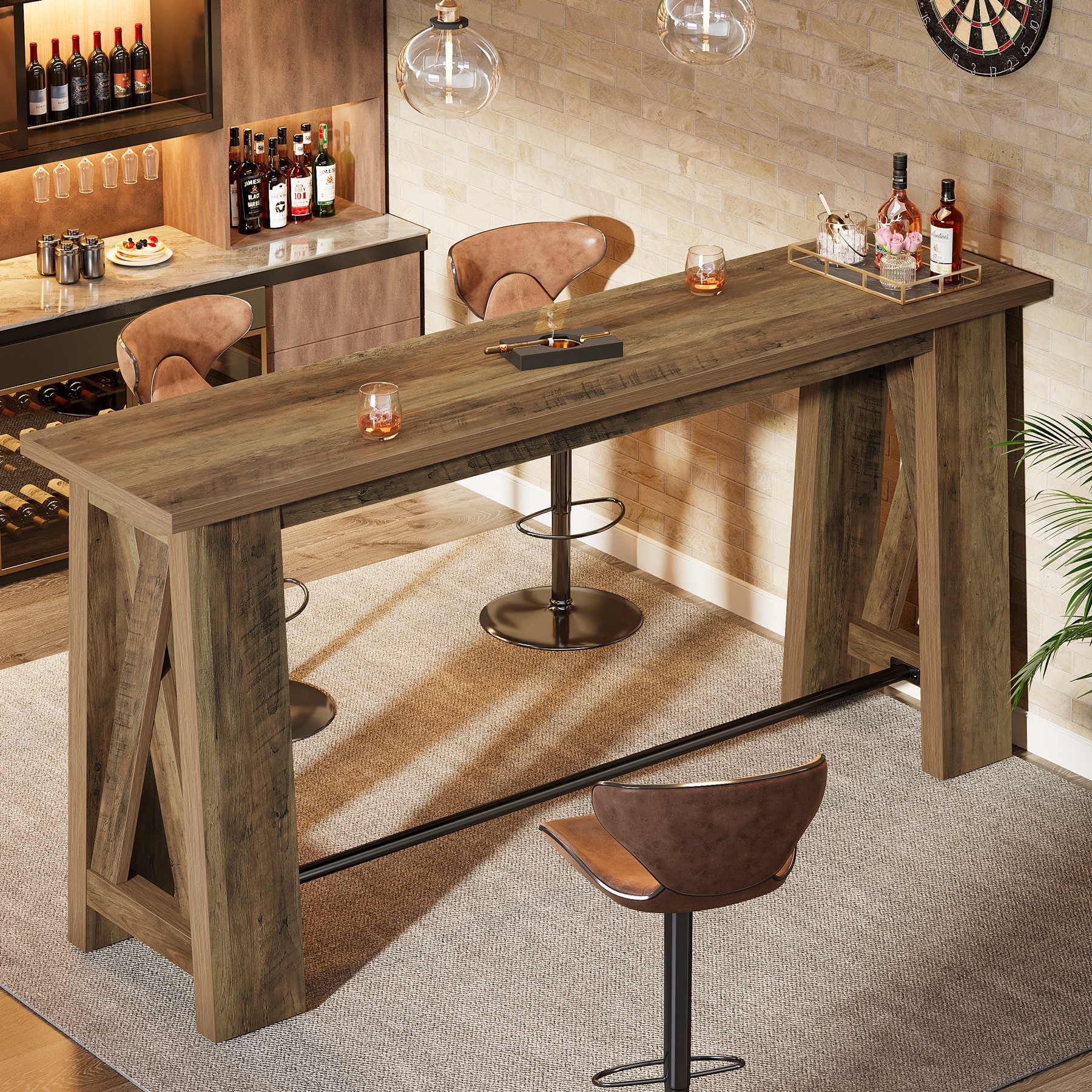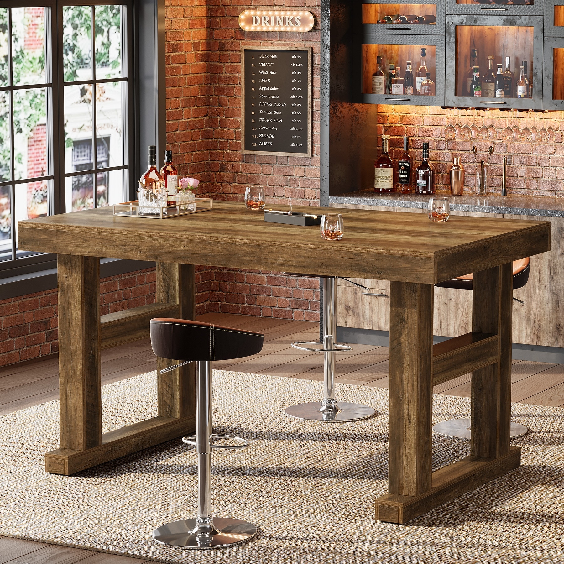Modern Industrial Bar Table with Metal Footrest