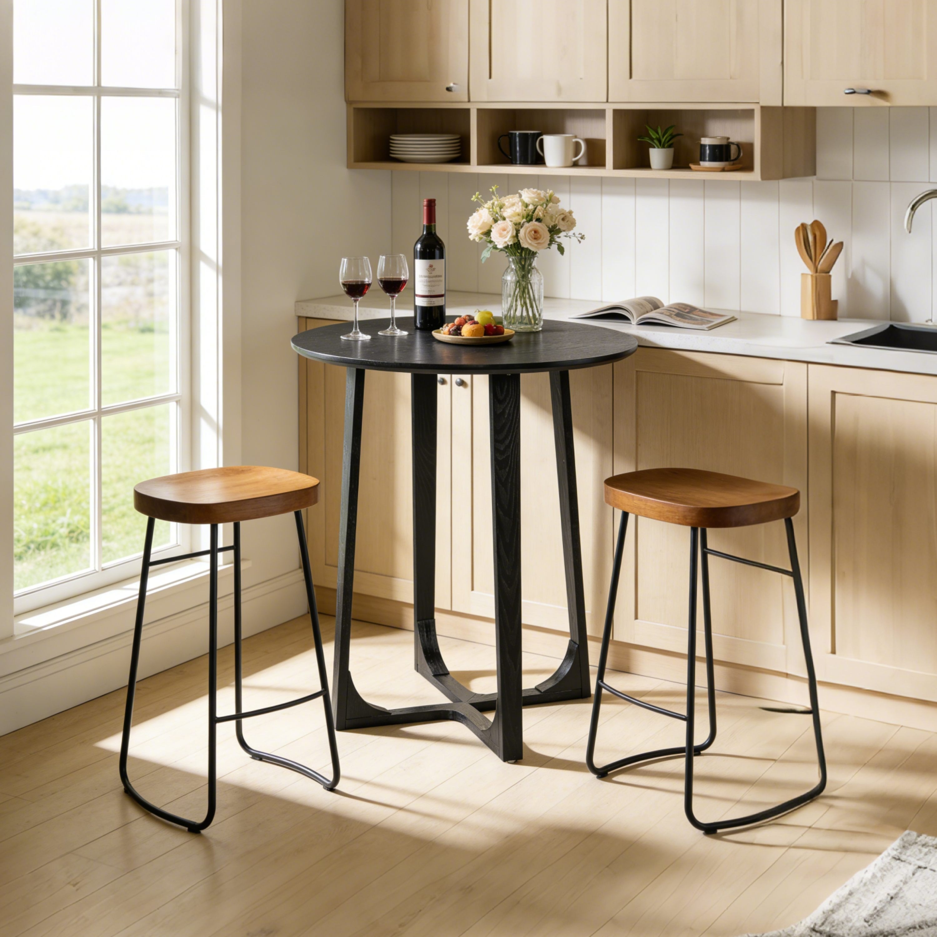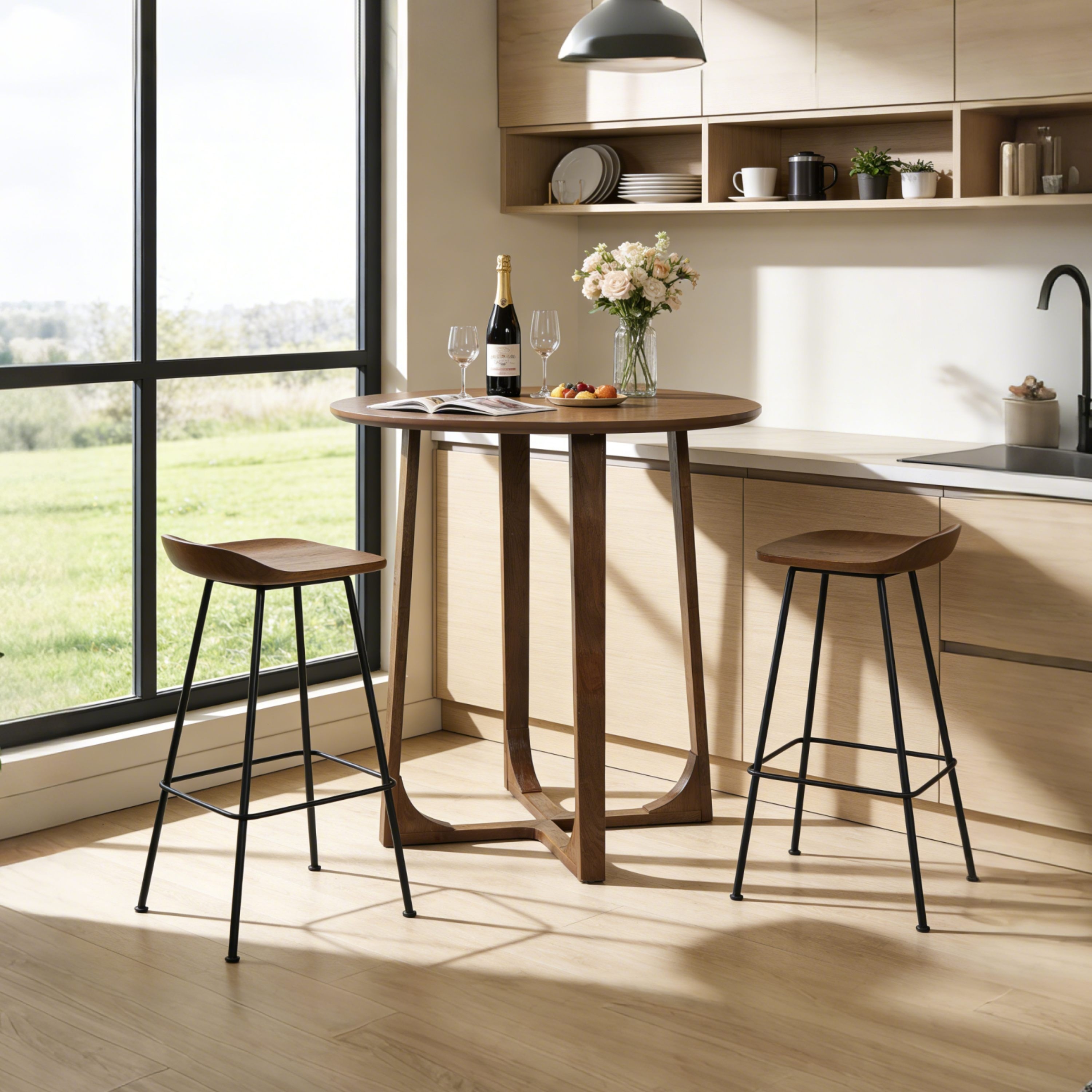 Christopher Knight Home - Vintage 35.43" High Round Wooden Bar Table with Geometric Base & Rounded Edge