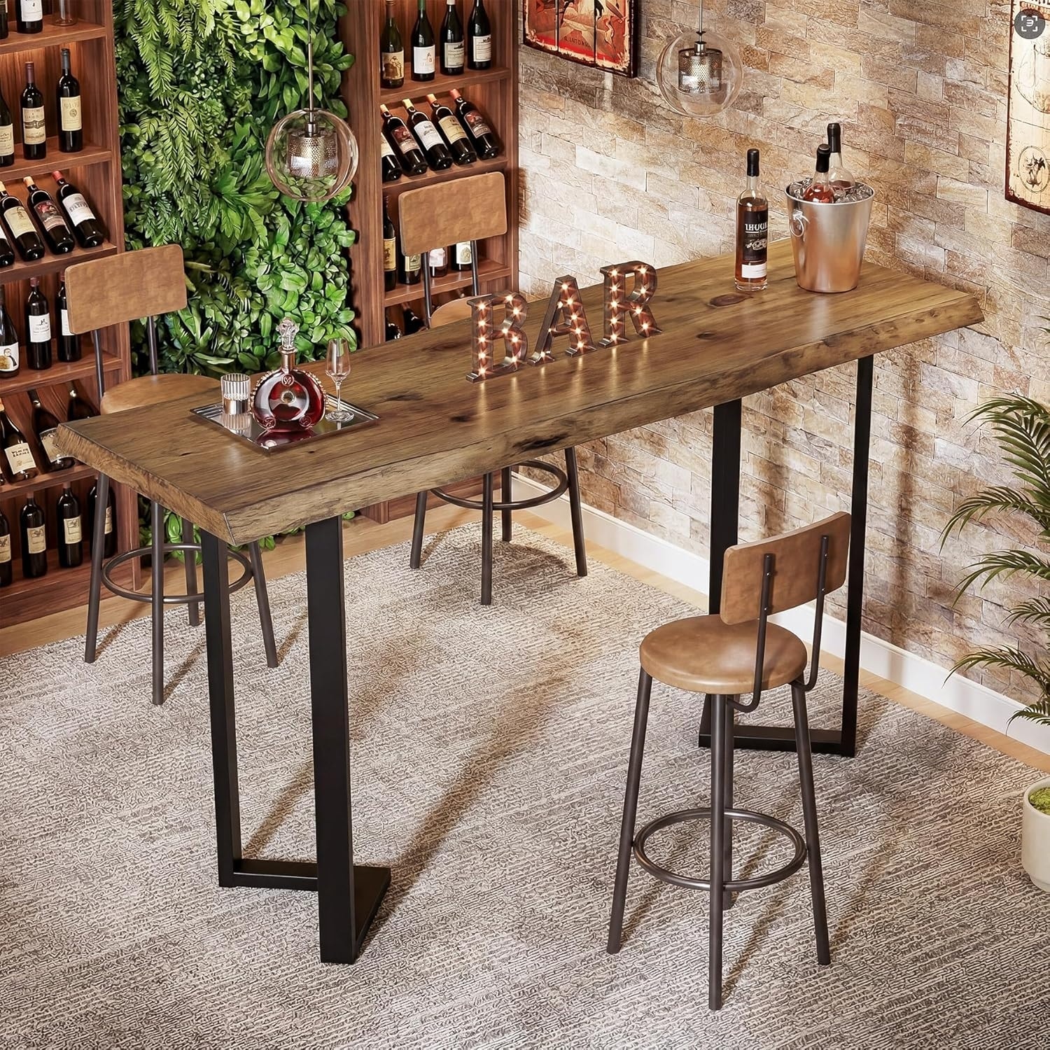63" Solid Wood Live-Edge Bar Table, Rectangle Counter Height Pub Table, Farmhouse Home Bar Unit for Kitchen