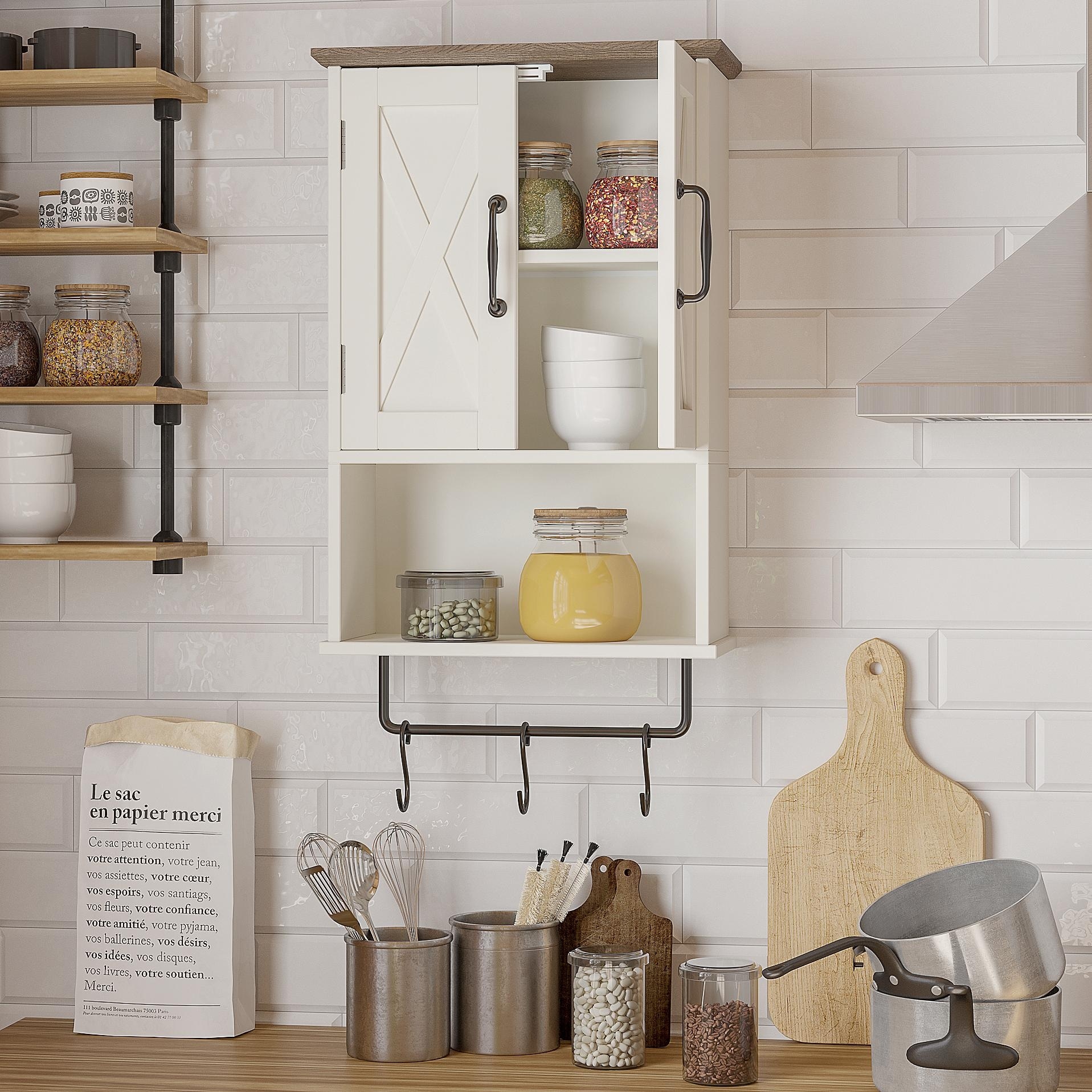 Wall-Mounted Farmhouse Cabinet - Towel Rack & Adjustable Shelf
