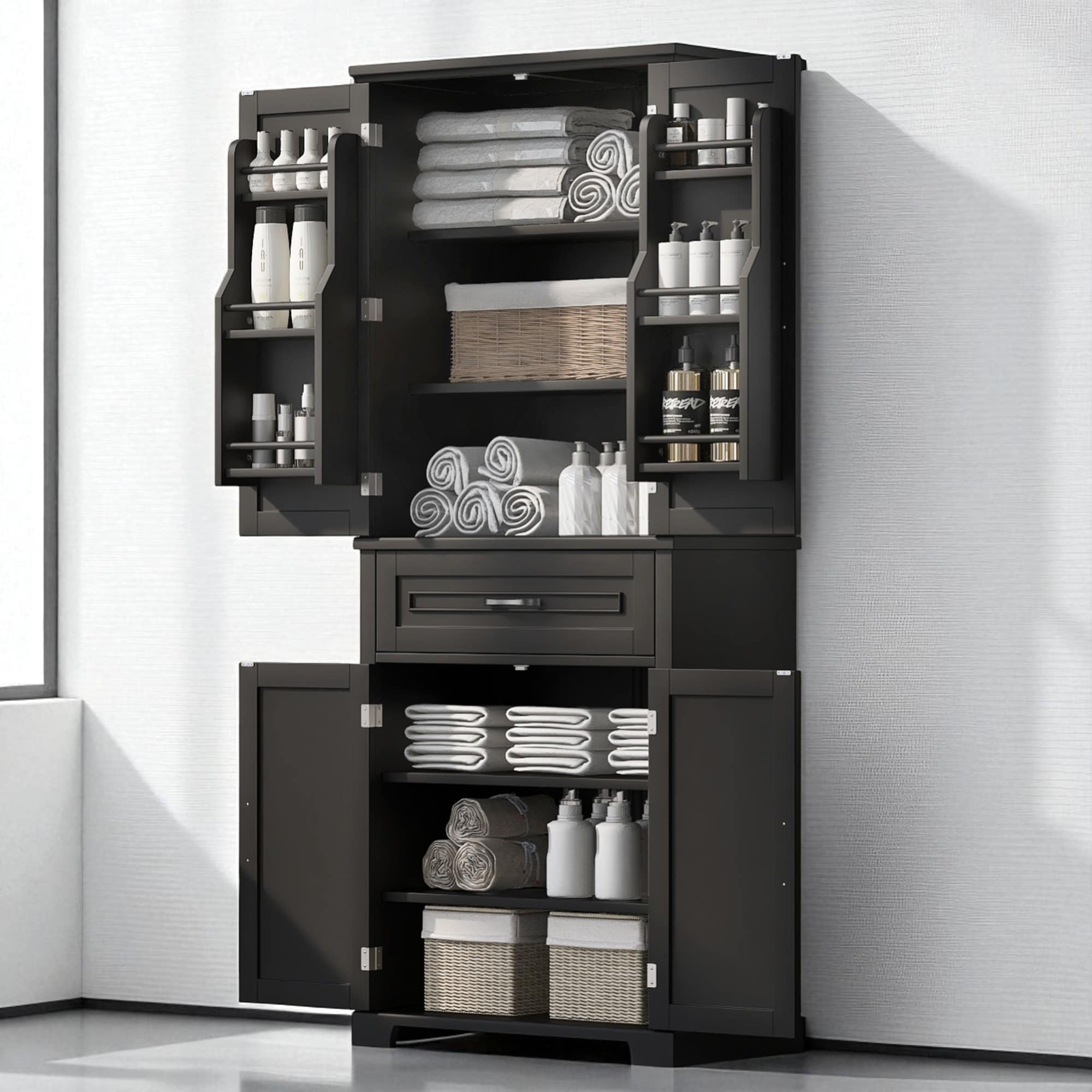 72" Tall Storage Cabinet with 4 Doors, Drawer, Adjustable Shelf & Side Racks, Painted MDF Freestanding Pantry