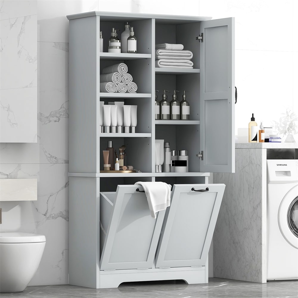 Bathroom Storage Cabinet with Doors & Drawers,Tilt-Out Laundry Hamper
