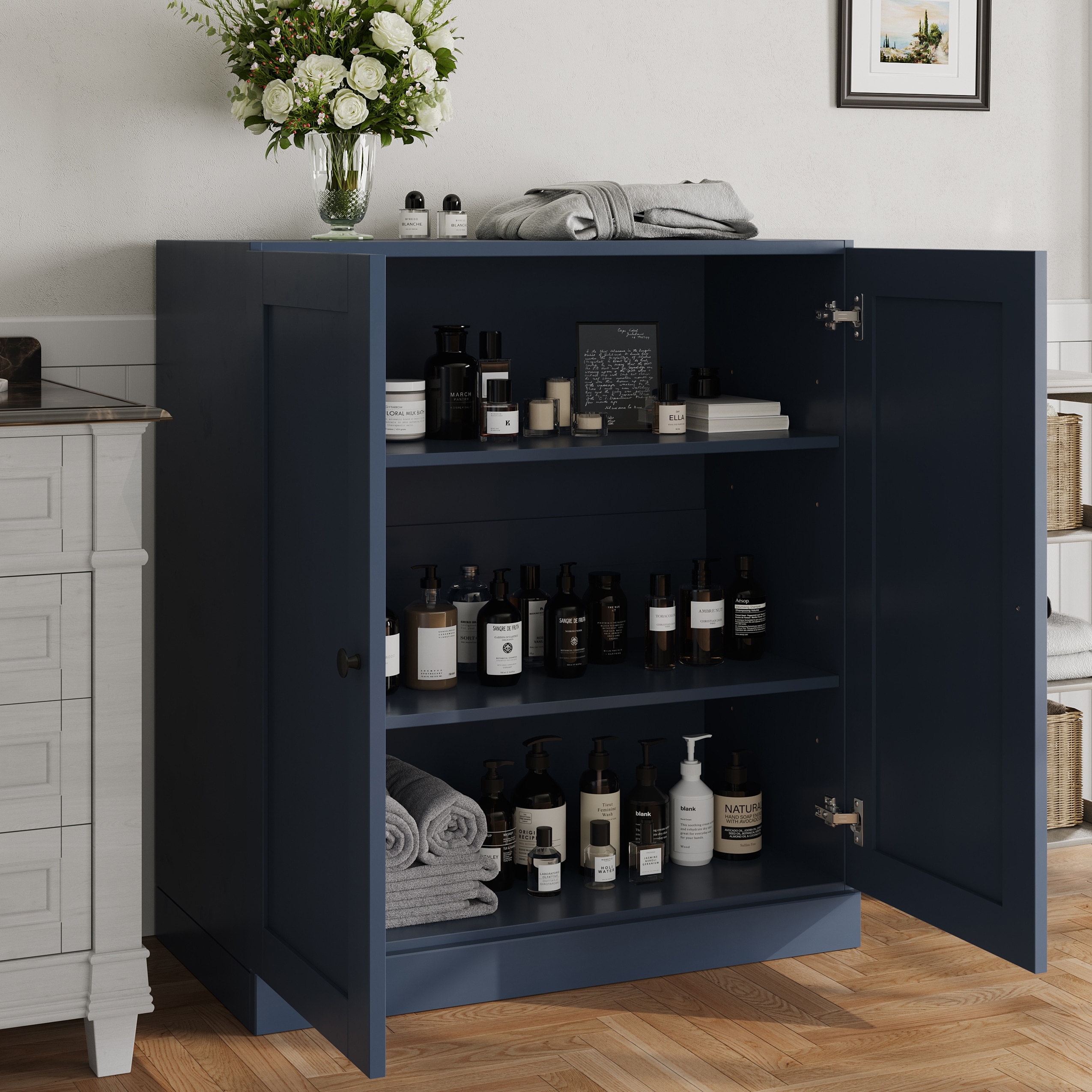 Palace Imports 100% Solid Wood 32" Bathroom Storage Cabinet with Shaker Doors and Adjustable Shelves