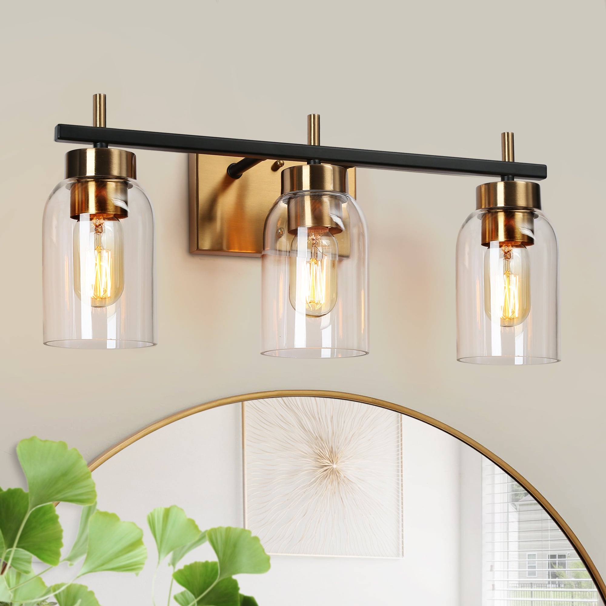 Valina Modern Black Gold 3-Light Bathroom Vanity Light Cylinder Glass Wall Sconces