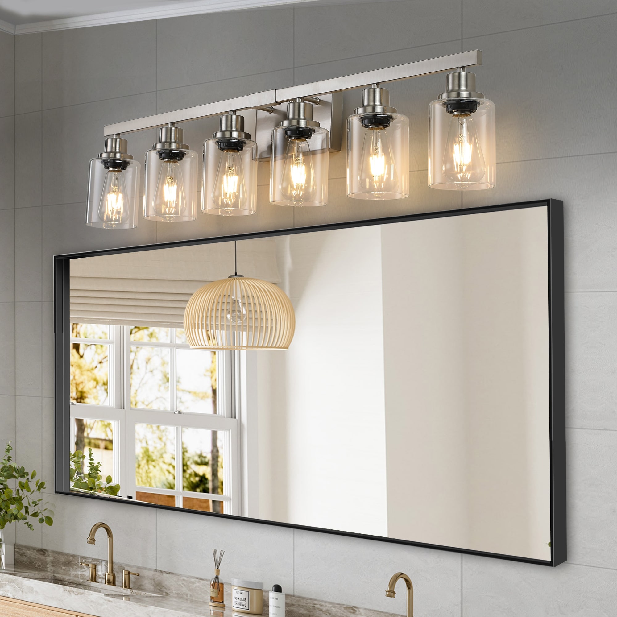 37" Golden 6-Light Vanity Light with Clear Glass Shades, Modern Iron Metal Bathroom Wall Fixture for Mirror