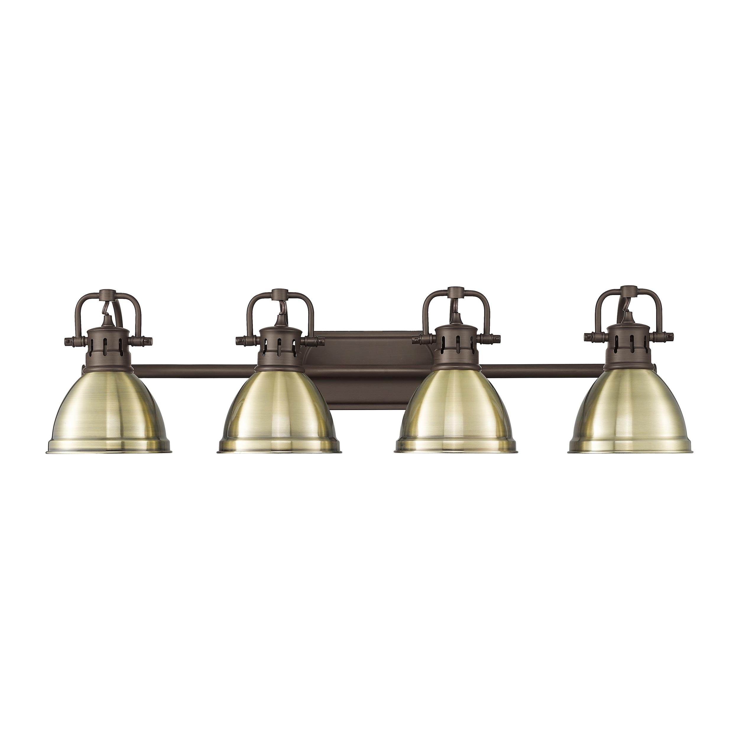 Duncan 4-Light Bath Vanity in Rubbed Bronze with Aged Brass